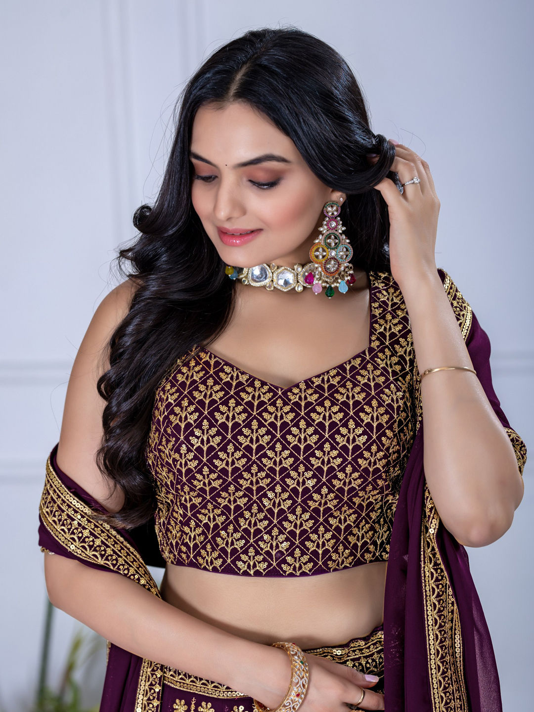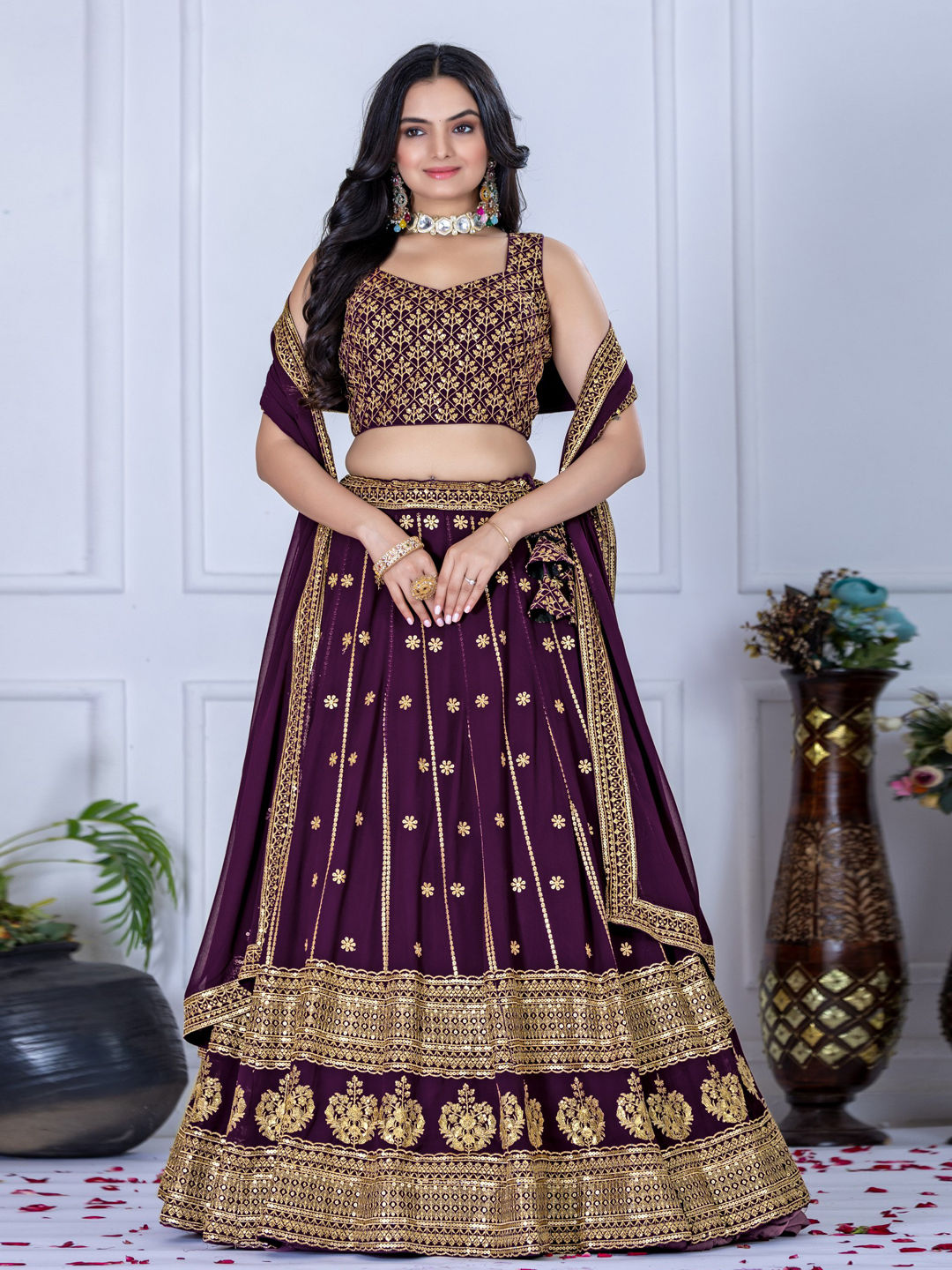 Purple and Violet color Lehenga in Faux Georgette fabric with Embroidered, Sequence, Thread work