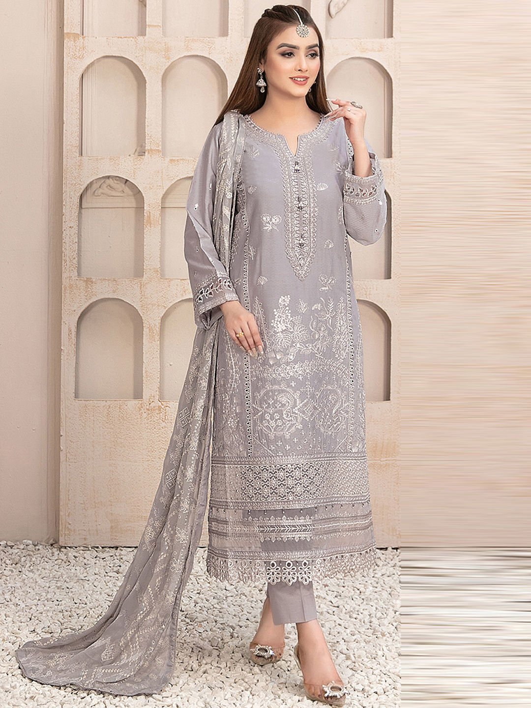 Black and Grey color Salwar Kameez in Faux Georgette fabric with Embroidered, Thread work
