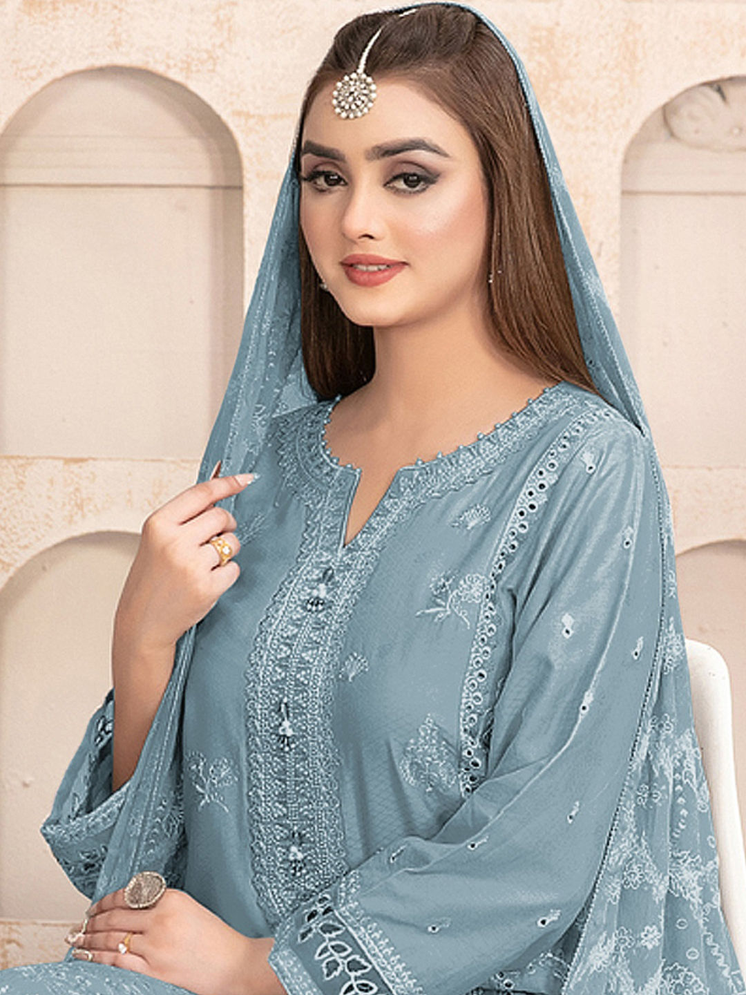 Black and Grey color Salwar Kameez in Faux Georgette fabric with Embroidered, Thread work