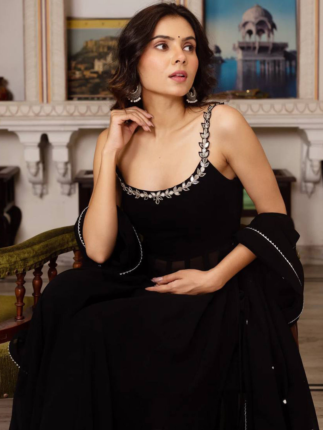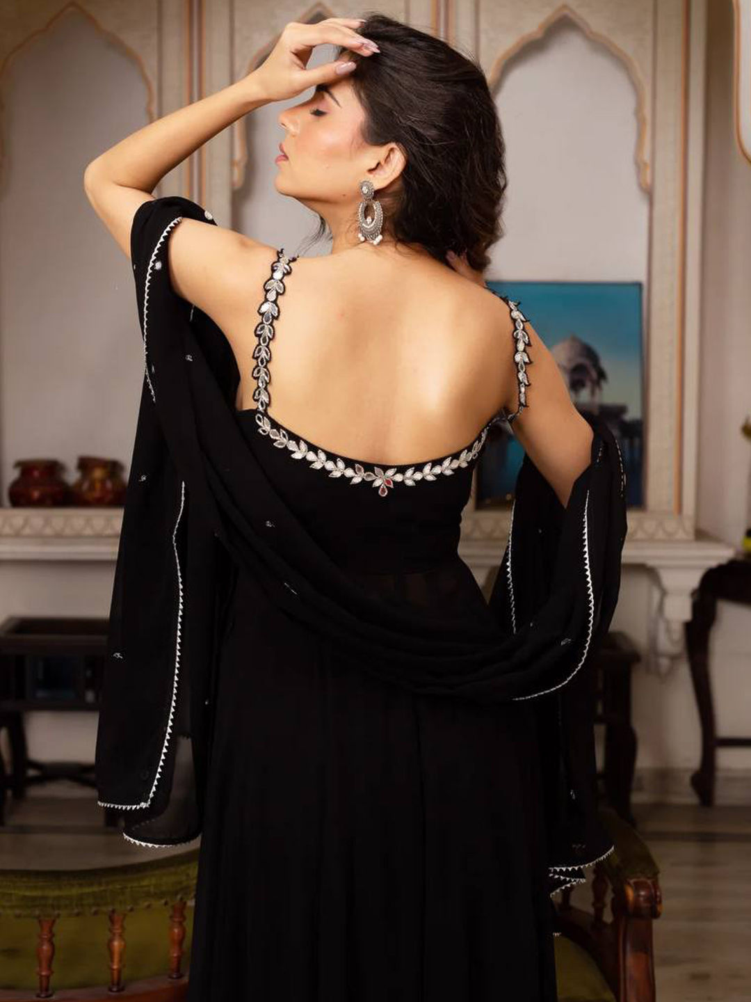 Black and Grey color Salwar Kameez in Faux Georgette fabric with Embroidered work