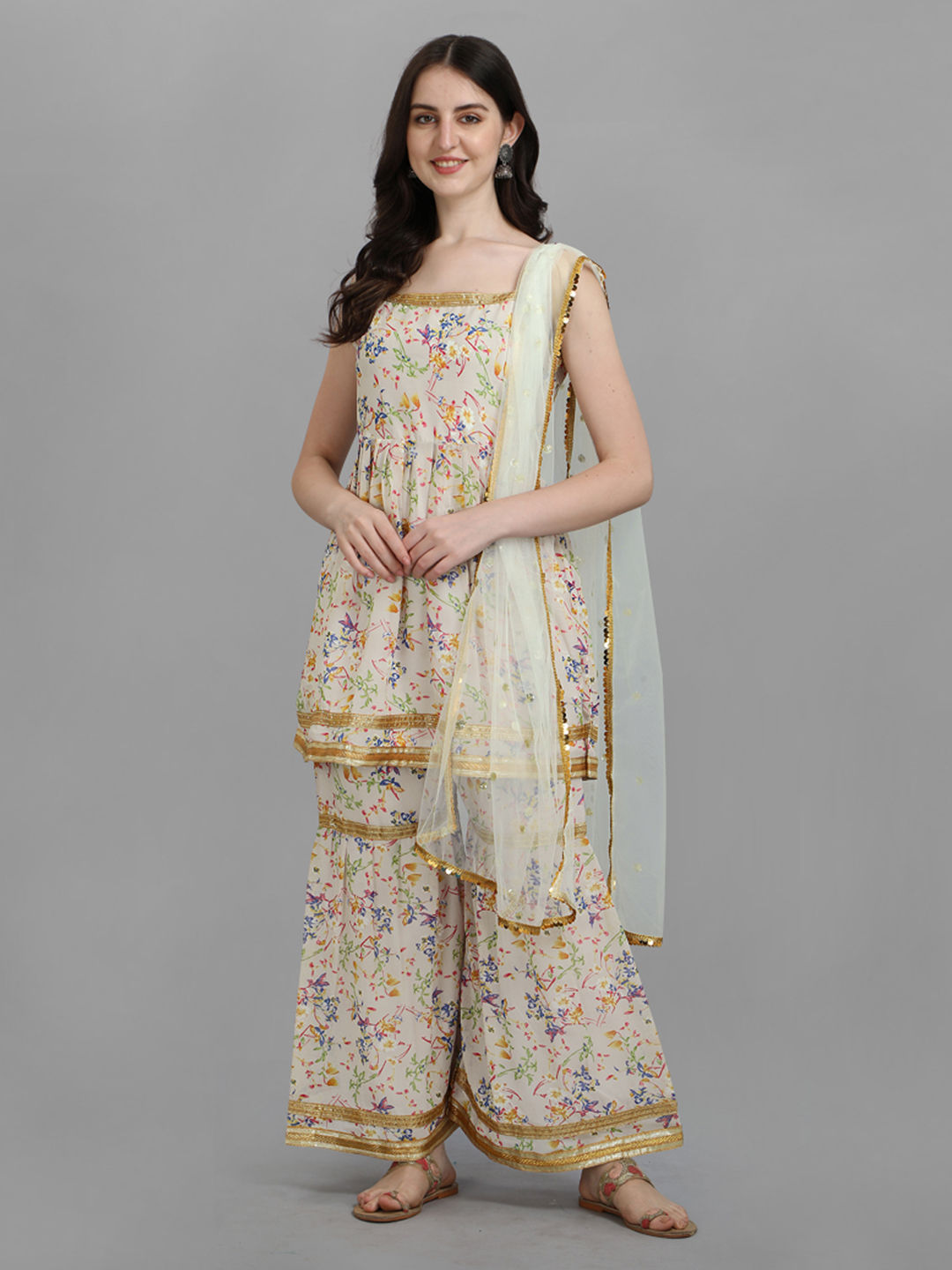 Black and Grey color Salwar Kameez in Faux Georgette fabric with Embroidered, Floral, Printed work