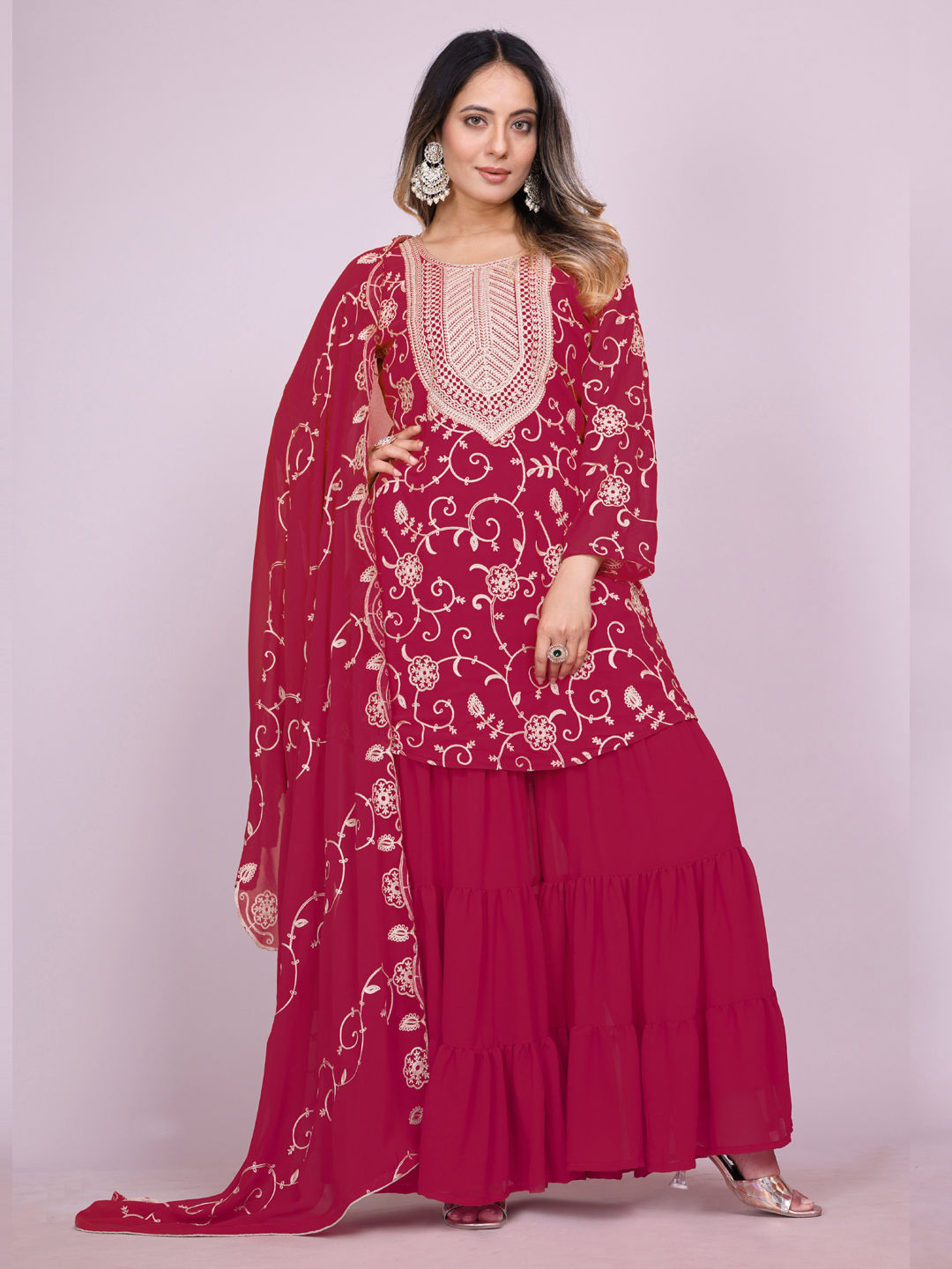 in Pink and Majenta with Embroidered work
