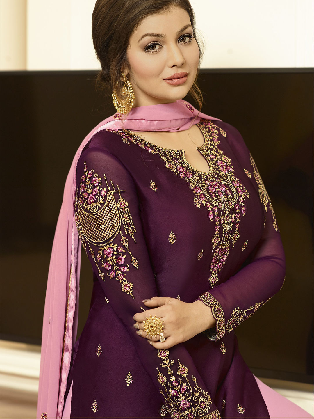 Pink and Majenta color Salwar Kameez in Faux Georgette fabric with Embroidered, Resham work