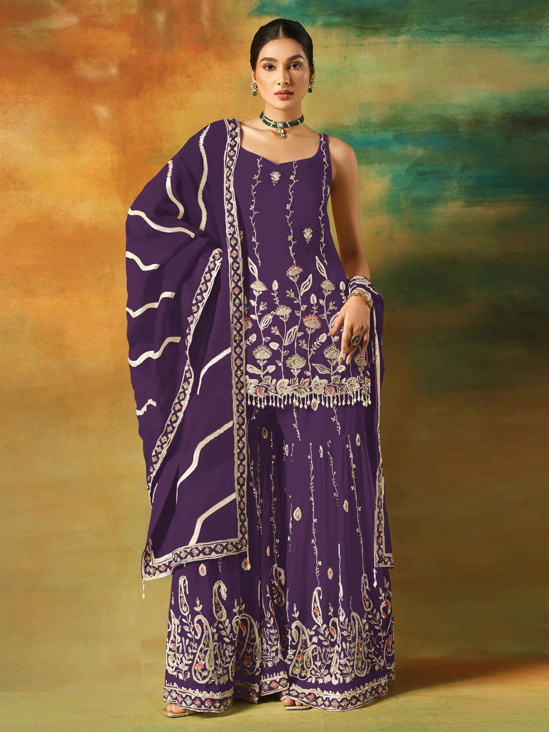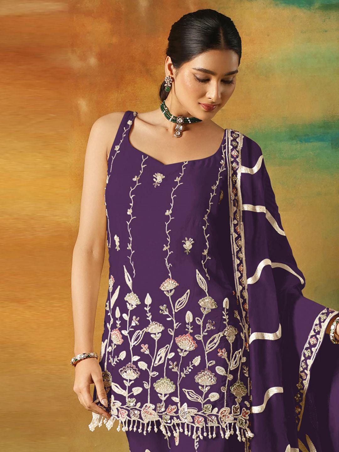 Purple and Violet color Salwar Kameez in Faux Georgette fabric with Bugle Beads, Sequence, Thread work