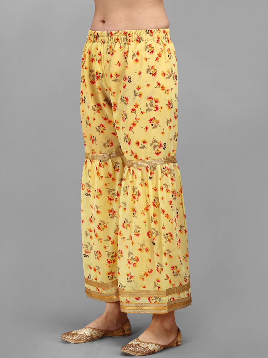 Yellow color Salwar Kameez in Faux Georgette fabric with Embroidered, Floral, Printed work