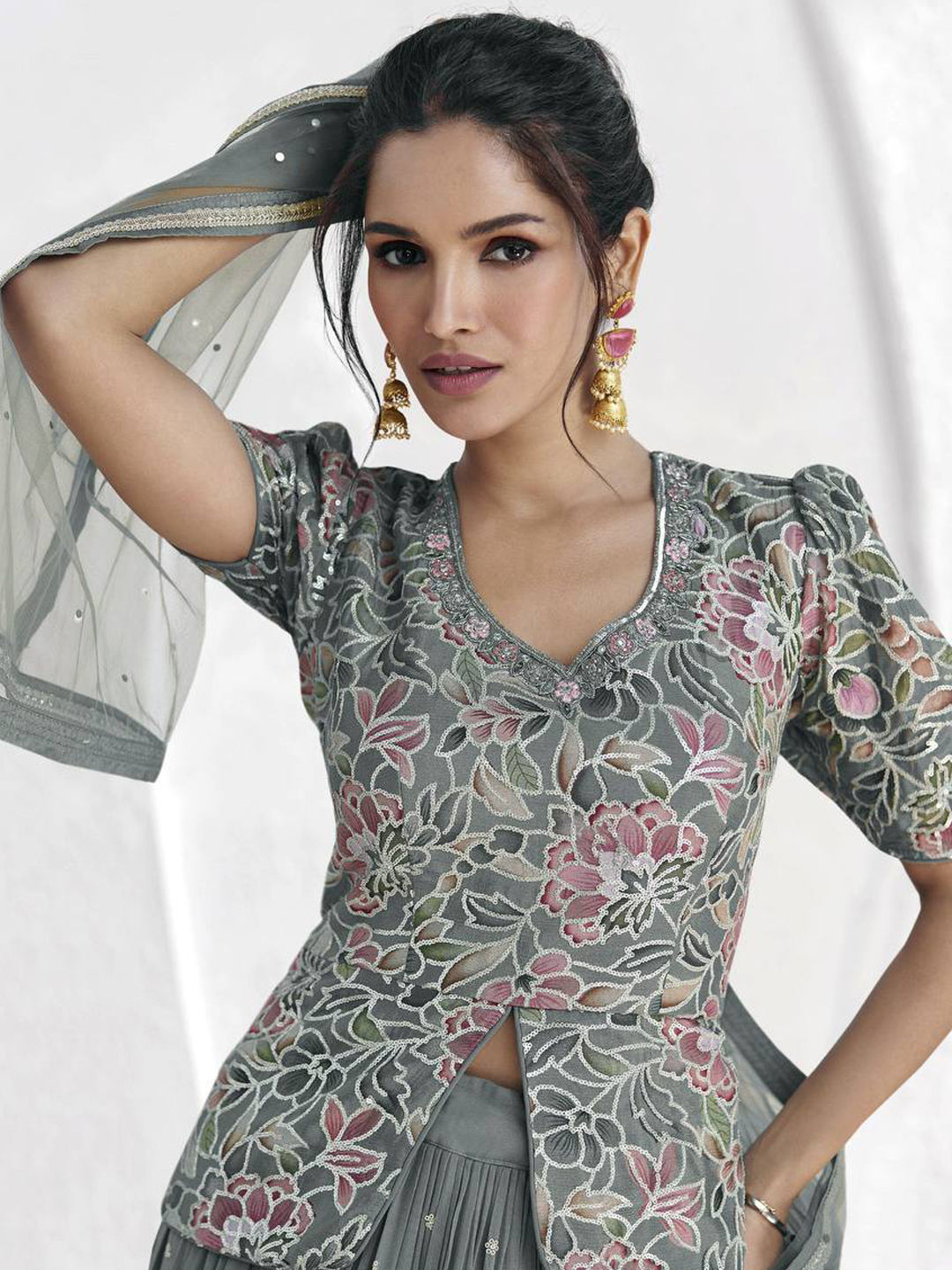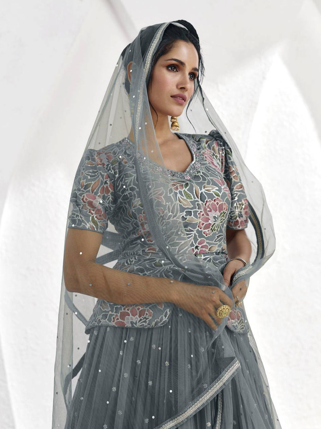 Black and Grey color Long Lehenga Choli in Faux Georgette fabric with Sequence work