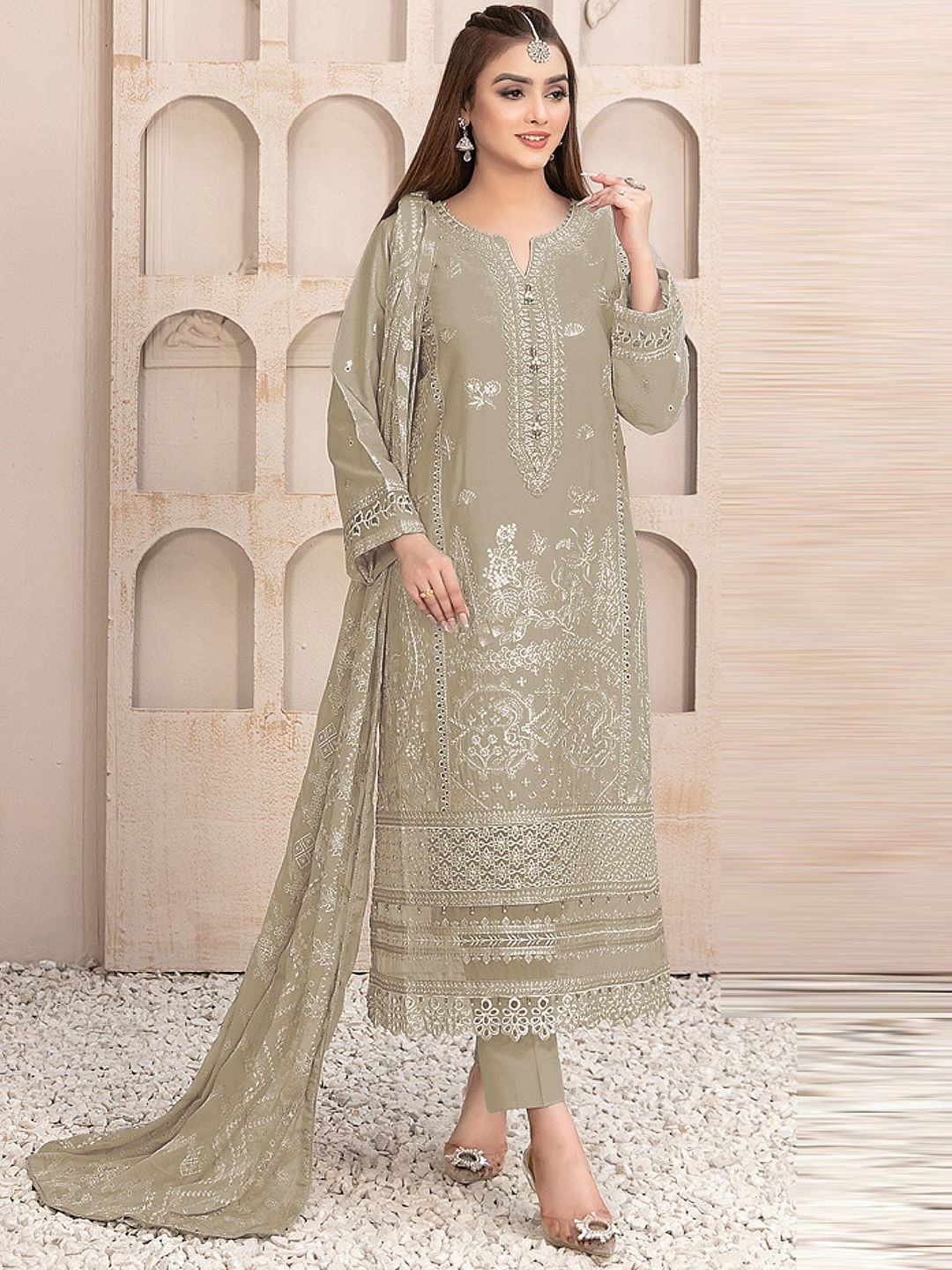 Beige and Brown color Salwar Kameez in Faux Georgette fabric with Embroidered, Thread work