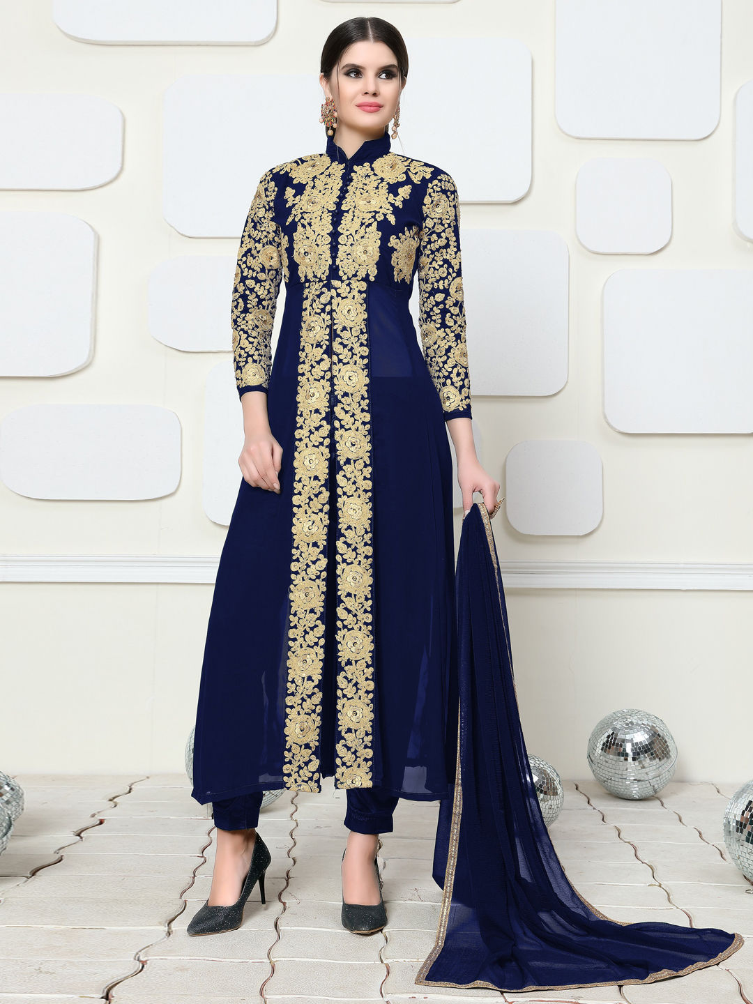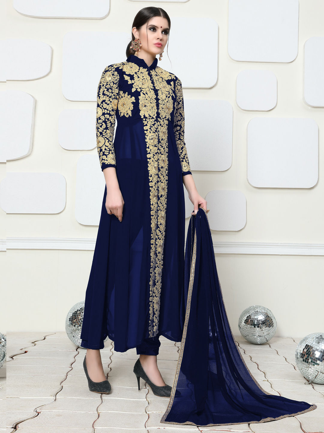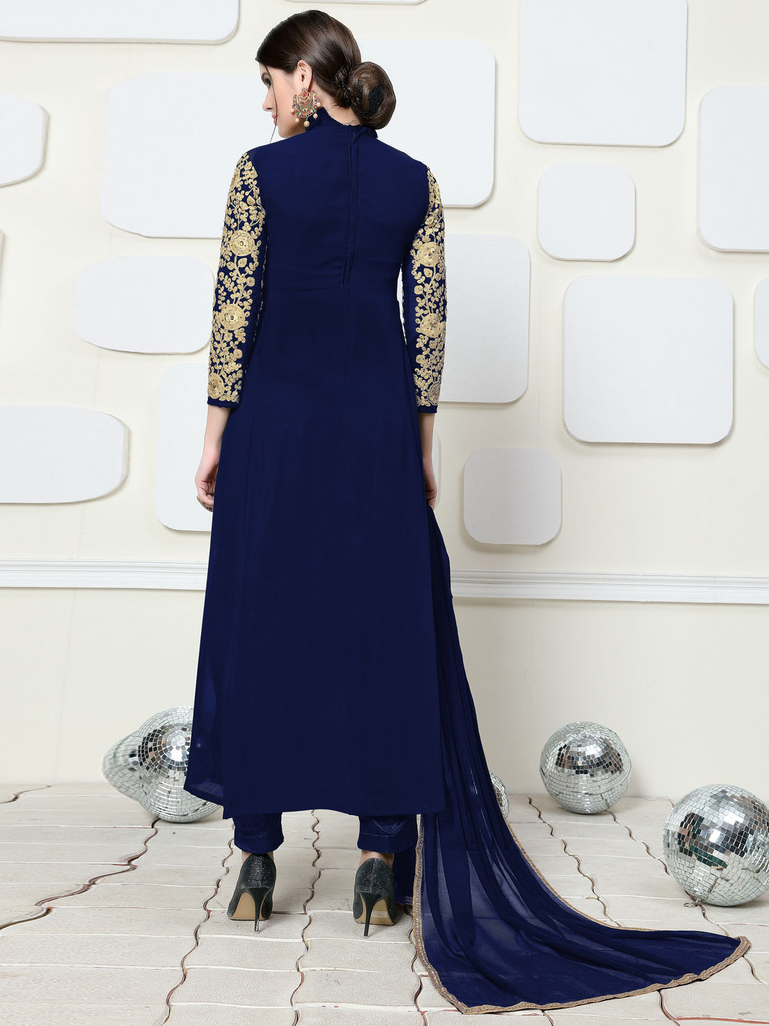 in Blue with Embroidered work