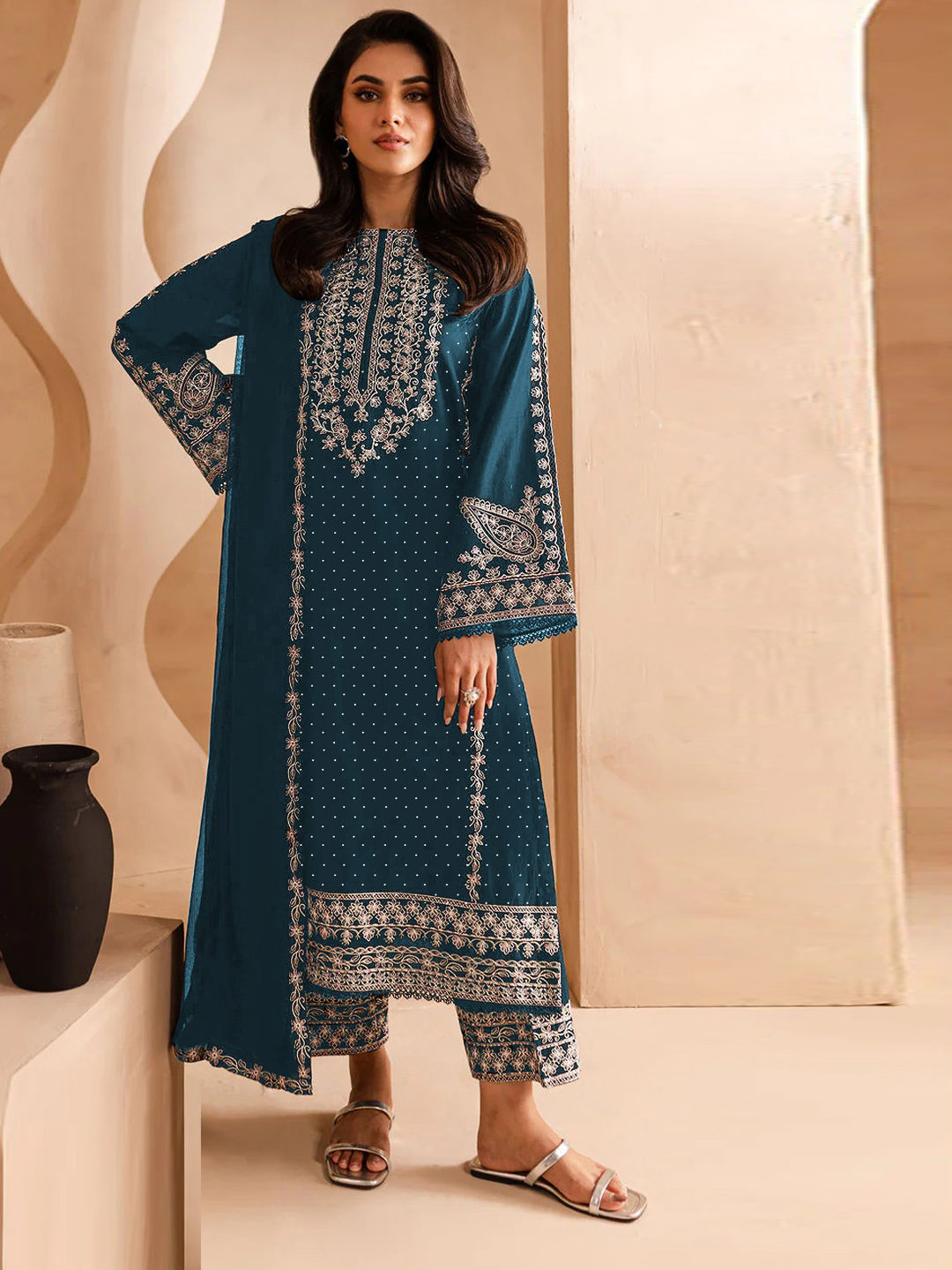 Blue color Salwar Kameez in Faux Georgette fabric with Embroidered, Resham, Thread work