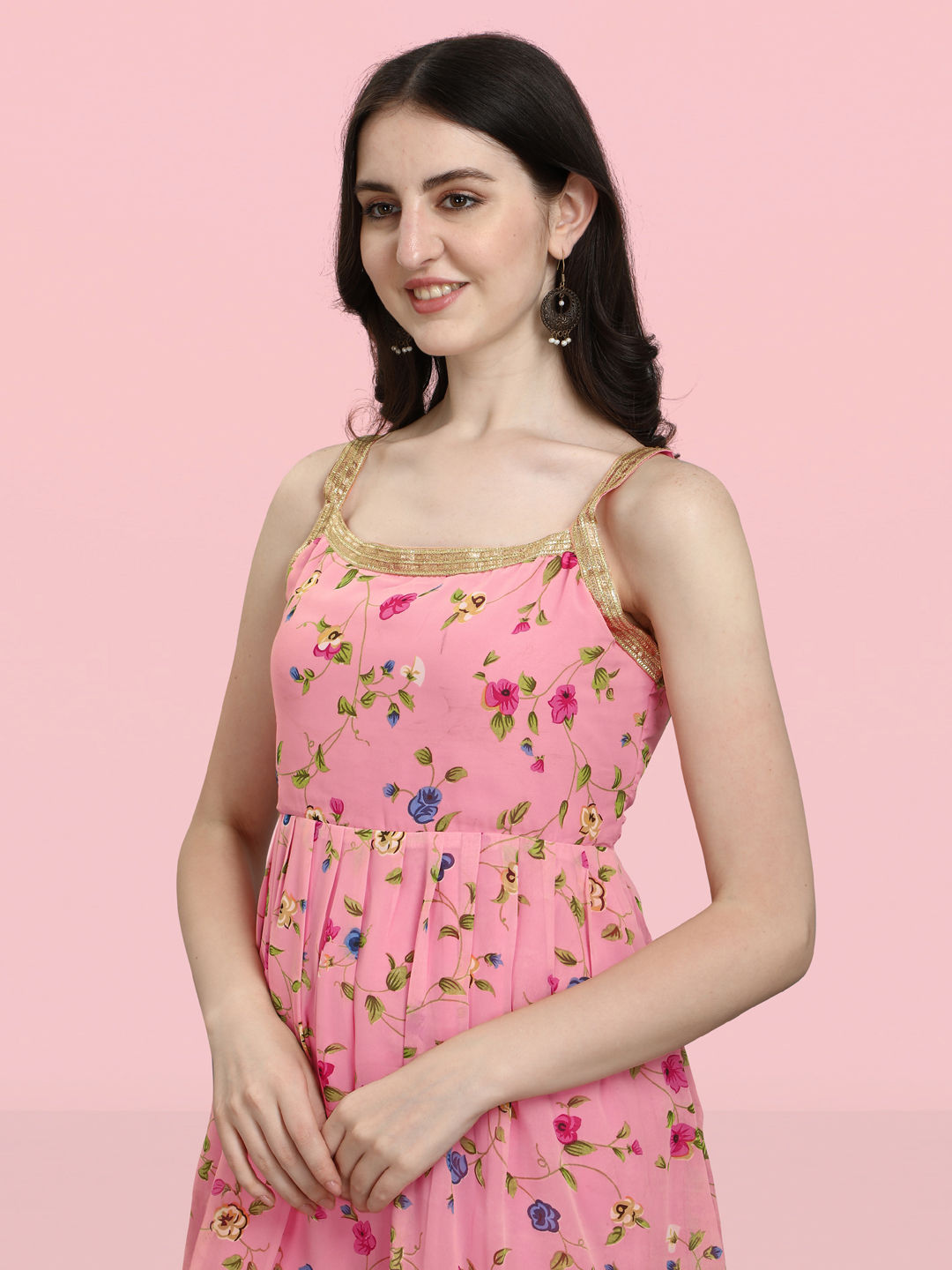 Pink and Majenta color Salwar Kameez in Faux Georgette fabric with Embroidered, Floral, Printed work