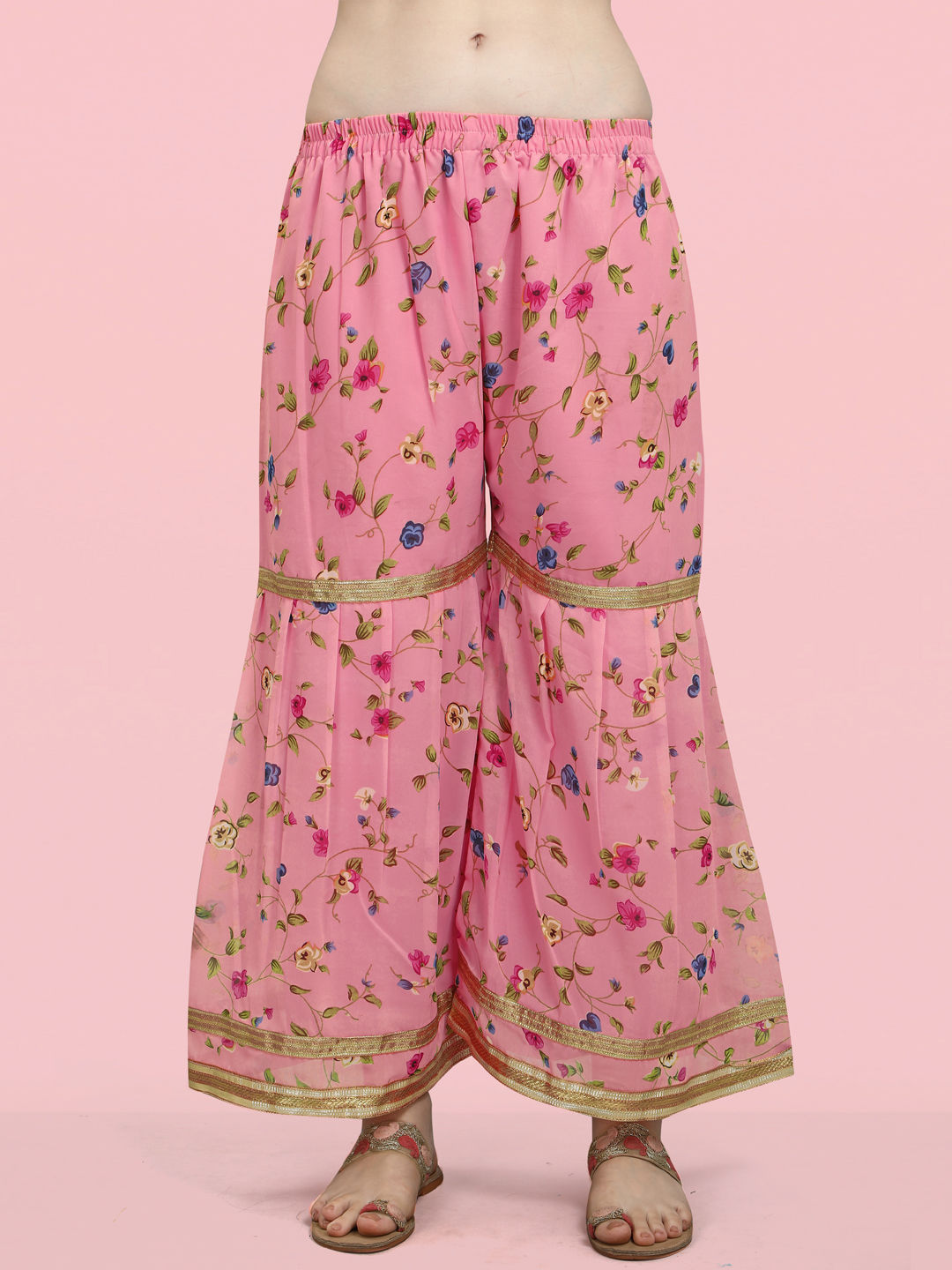 Faux Georgette Festive Salwar Kameez in Pink and Majenta with Floral work