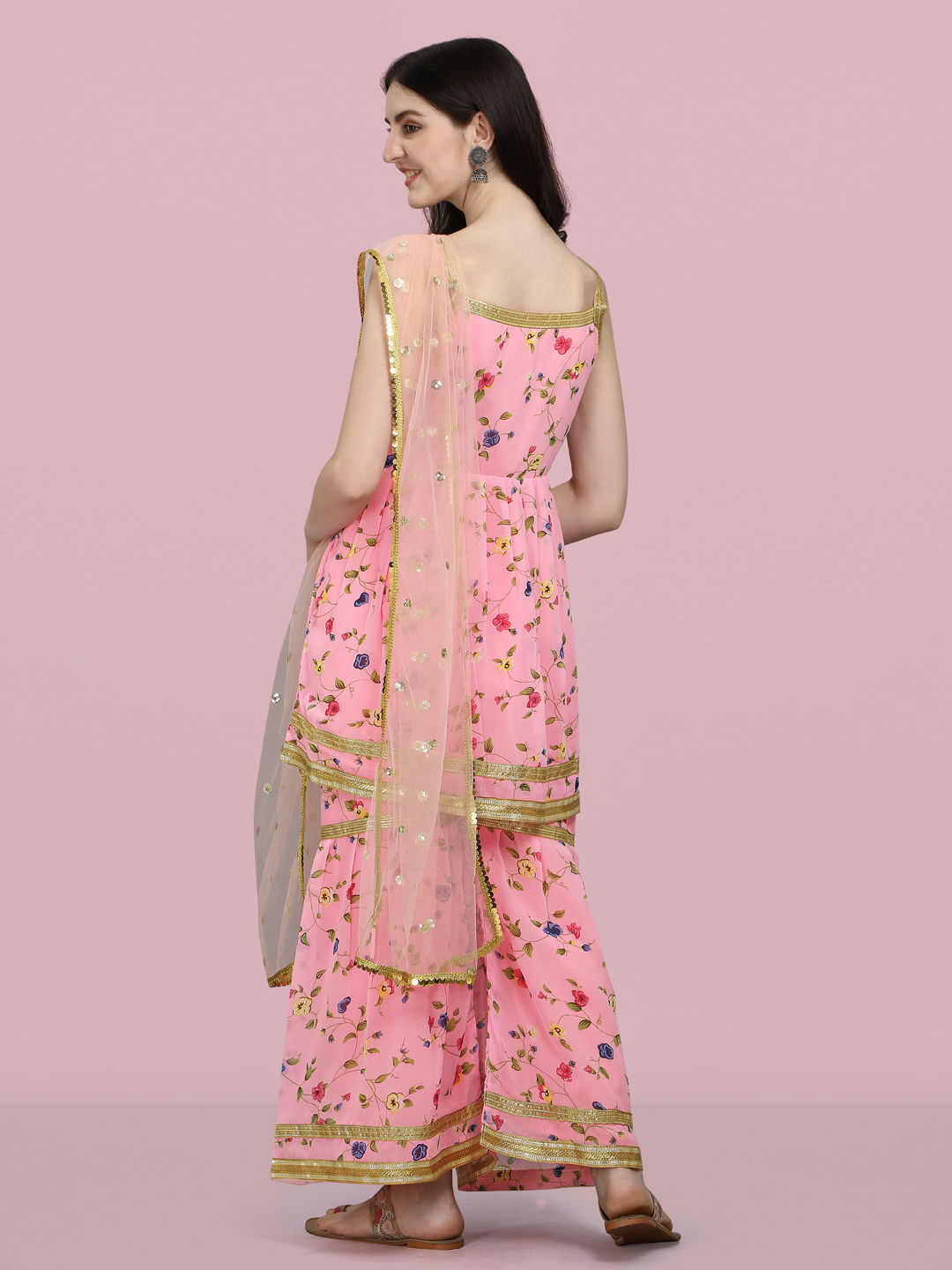 Pink and Majenta color Salwar Kameez in Faux Georgette fabric with Embroidered, Floral, Printed work