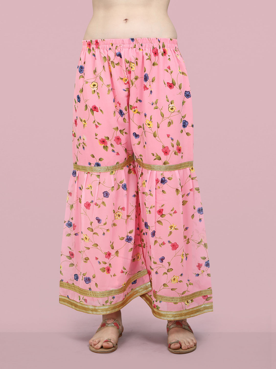 Faux Georgette Festive Salwar Kameez in Pink and Majenta with Floral work