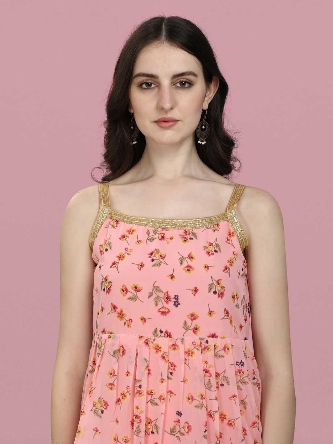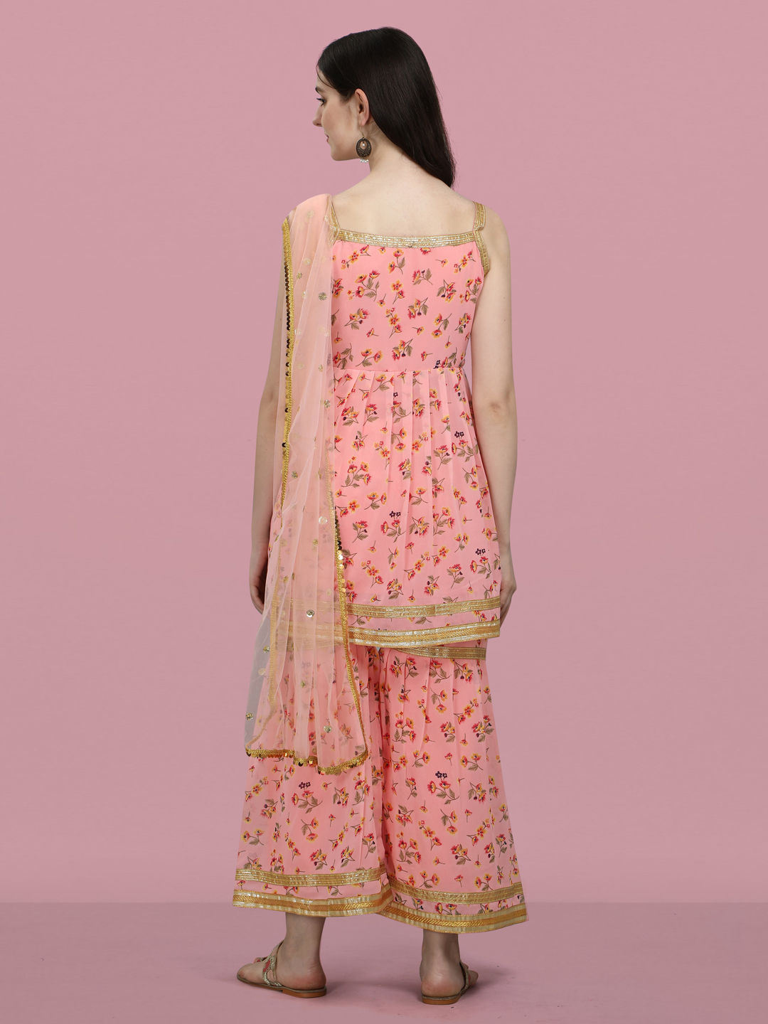 Pink and Majenta color Salwar Kameez in Faux Georgette fabric with Embroidered, Floral, Printed work