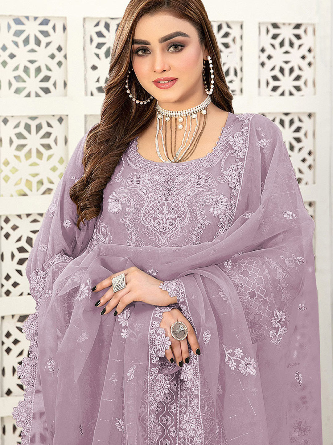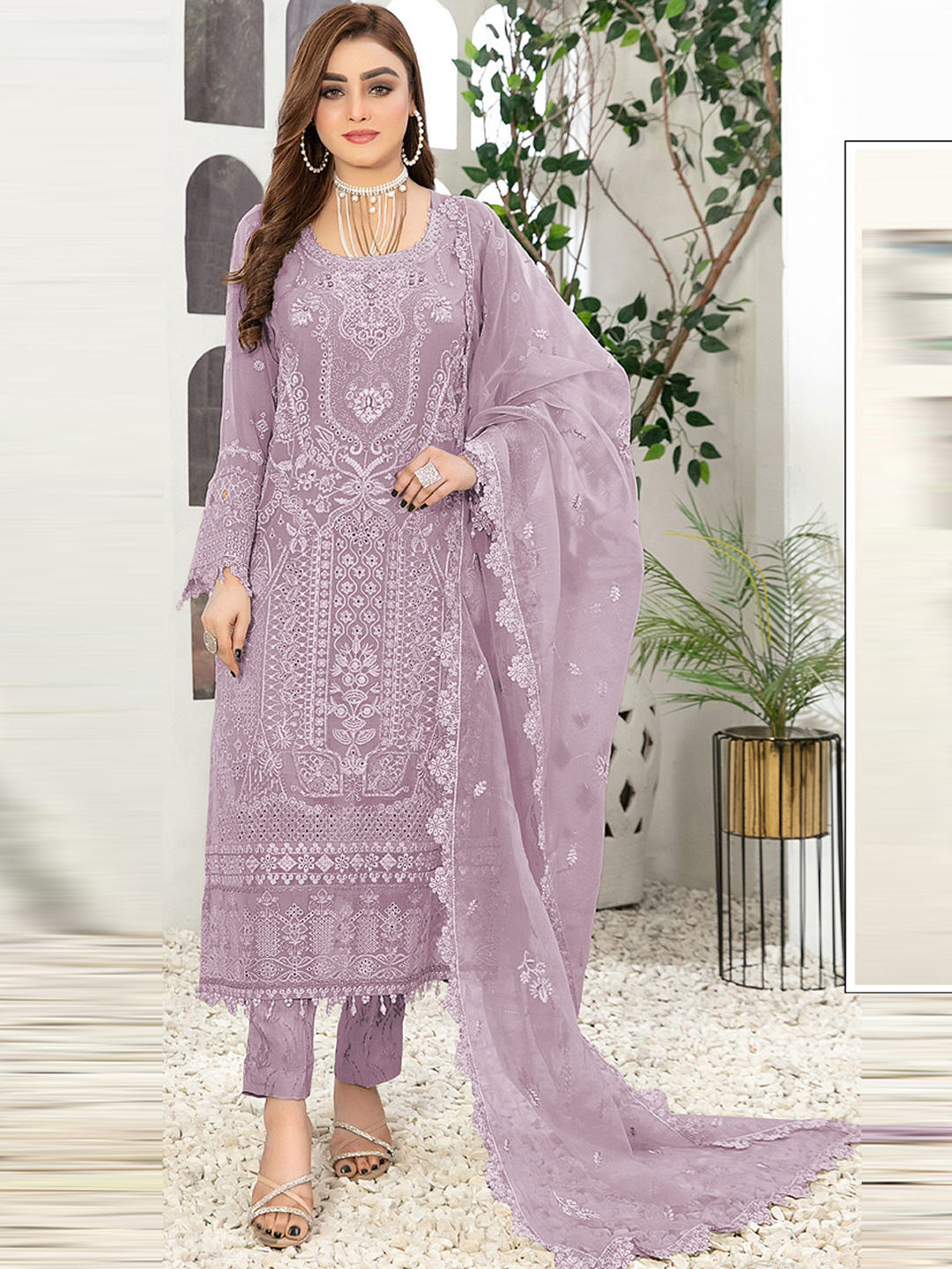 Purple and Violet color Salwar Kameez in Faux Georgette fabric with Embroidered, Resham, Thread work