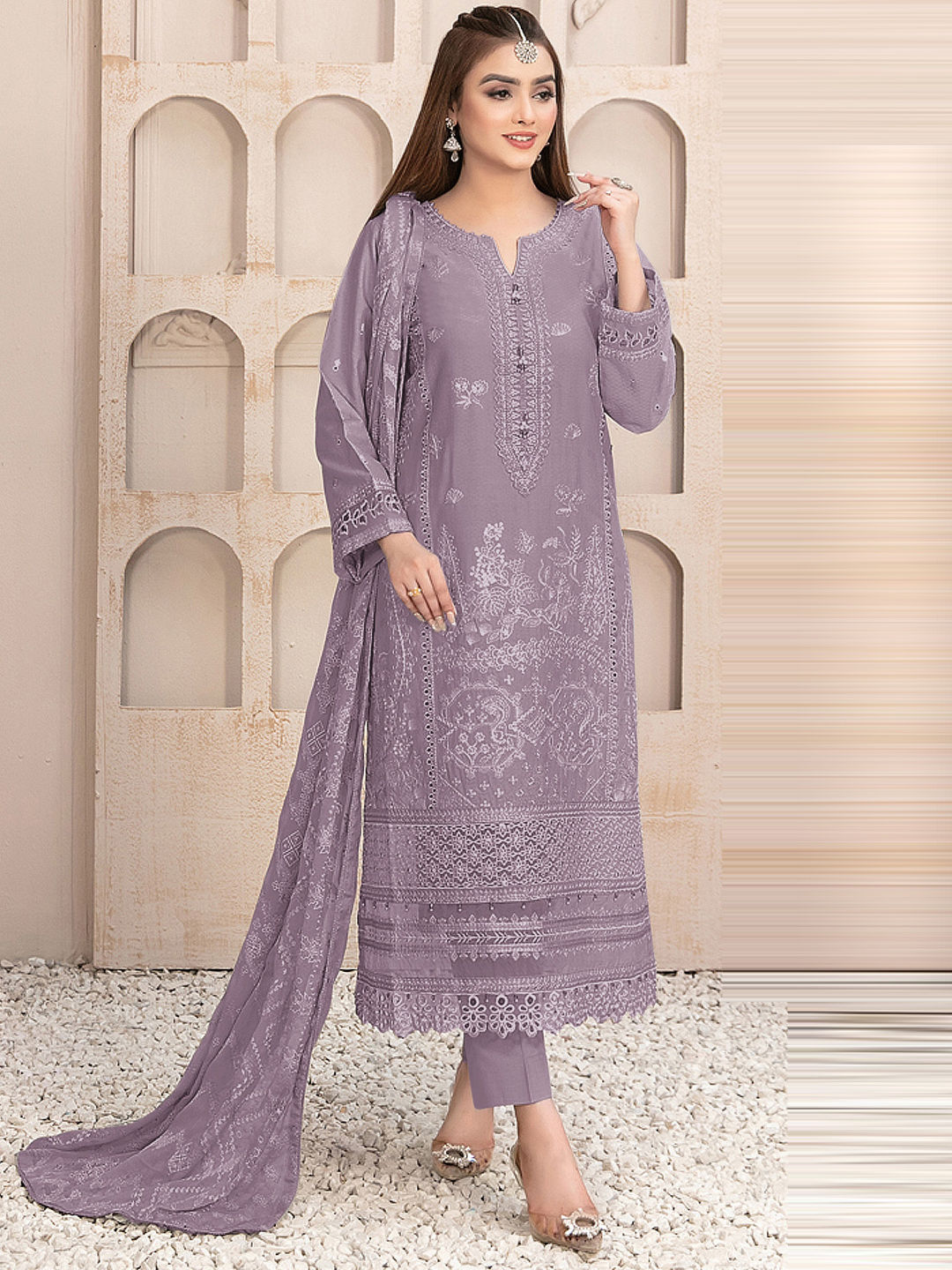 Purple and Violet color Salwar Kameez in Faux Georgette fabric with Embroidered, Thread work