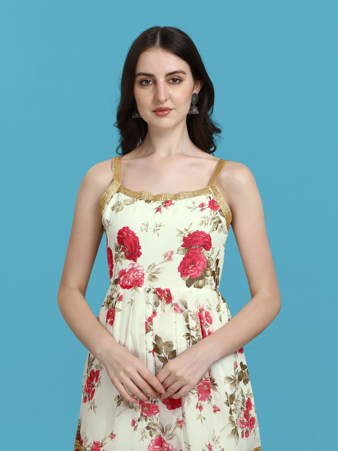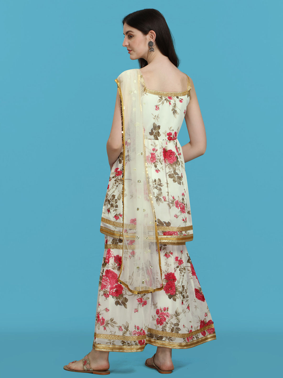 White and Off White color Salwar Kameez in Faux Georgette fabric with Embroidered, Floral, Printed work