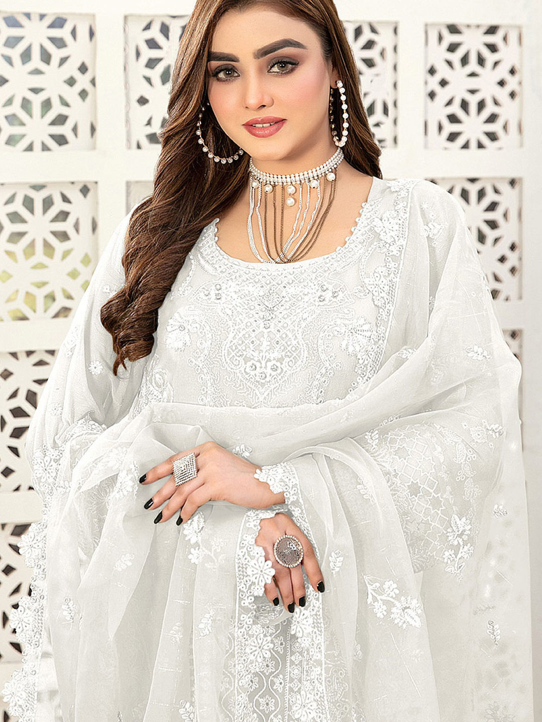 White and Off White color Salwar Kameez in Faux Georgette fabric with Embroidered, Resham, Thread work