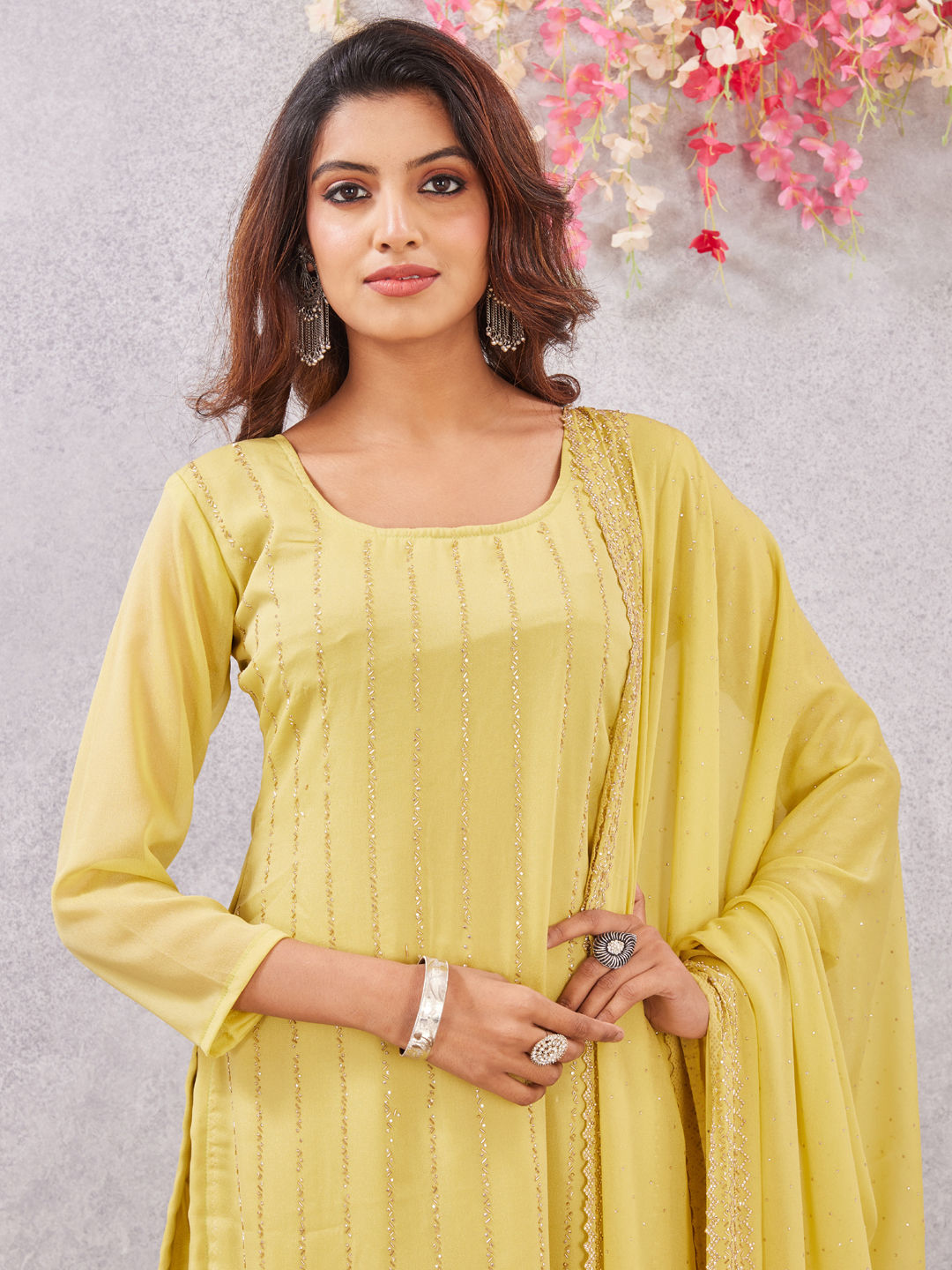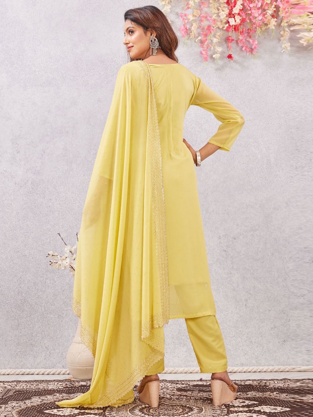Yellow color Salwar Kameez in Faux Georgette fabric with Bugle Beads work
