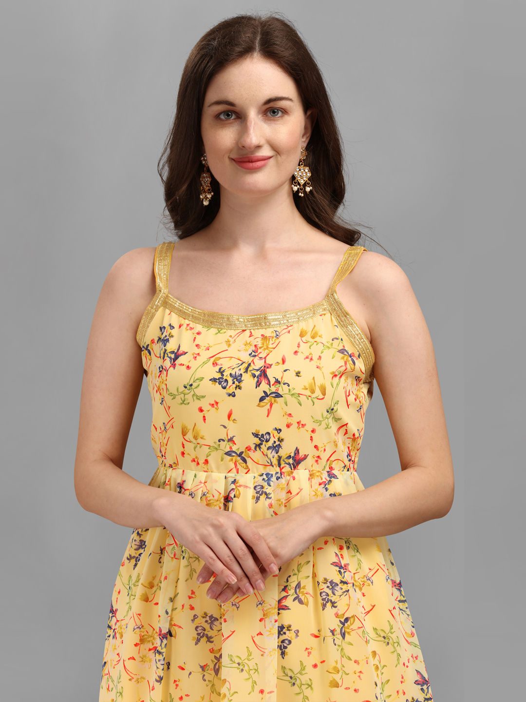 Yellow color Salwar Kameez in Faux Georgette fabric with Embroidered, Floral, Printed work