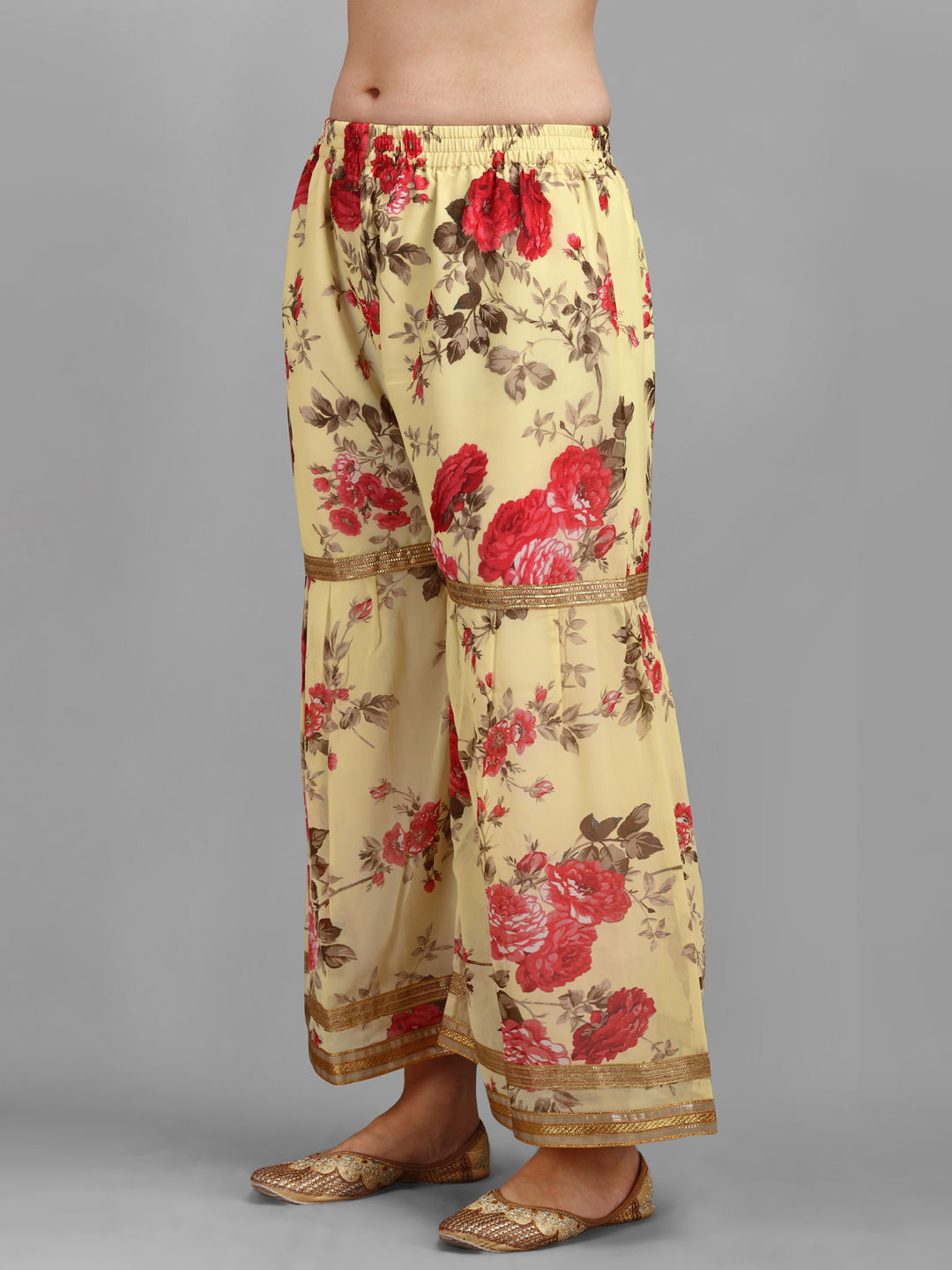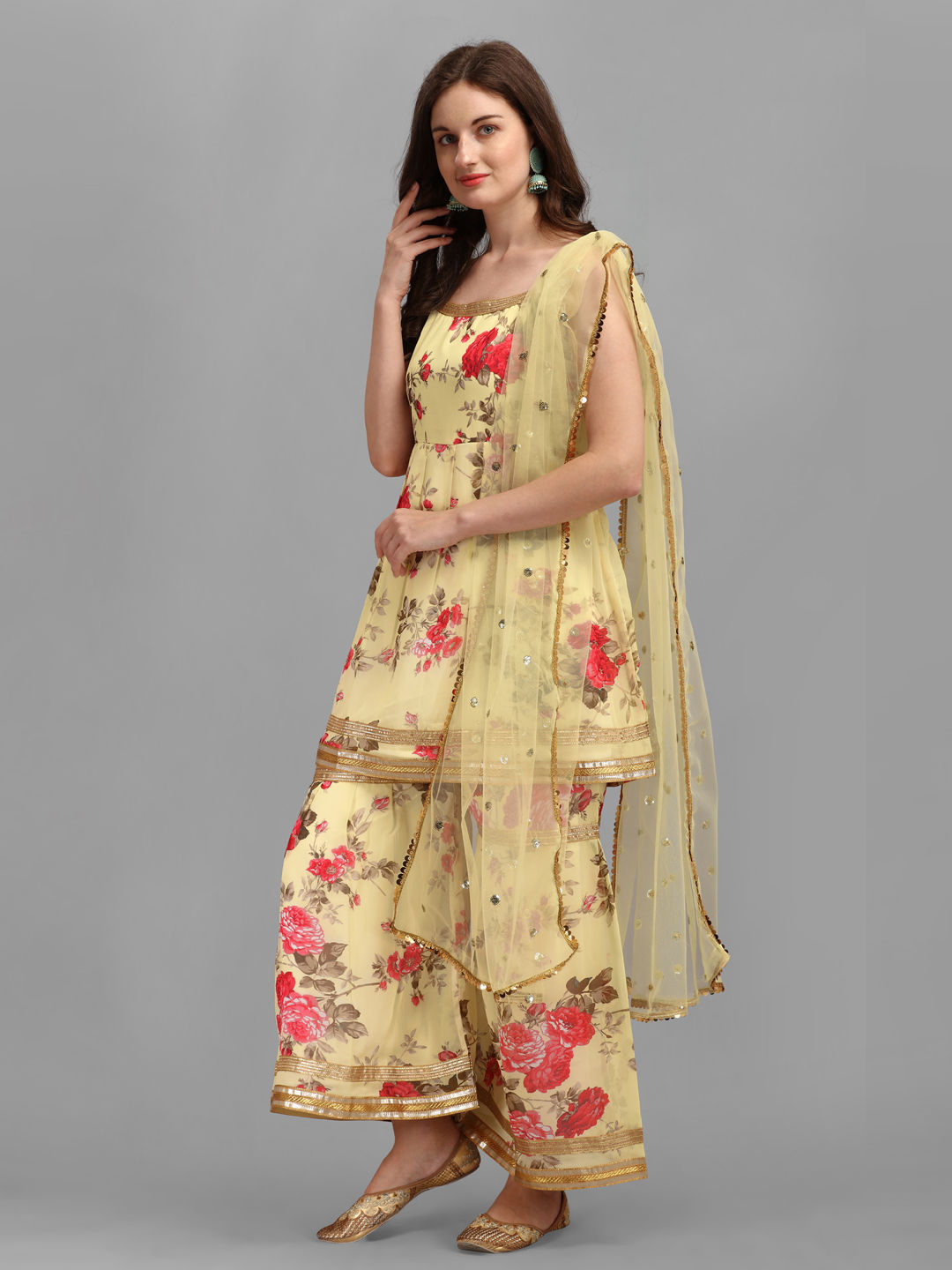Yellow color Salwar Kameez in Faux Georgette fabric with Embroidered, Floral, Printed work