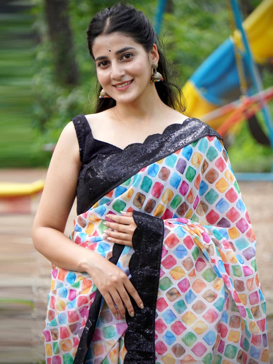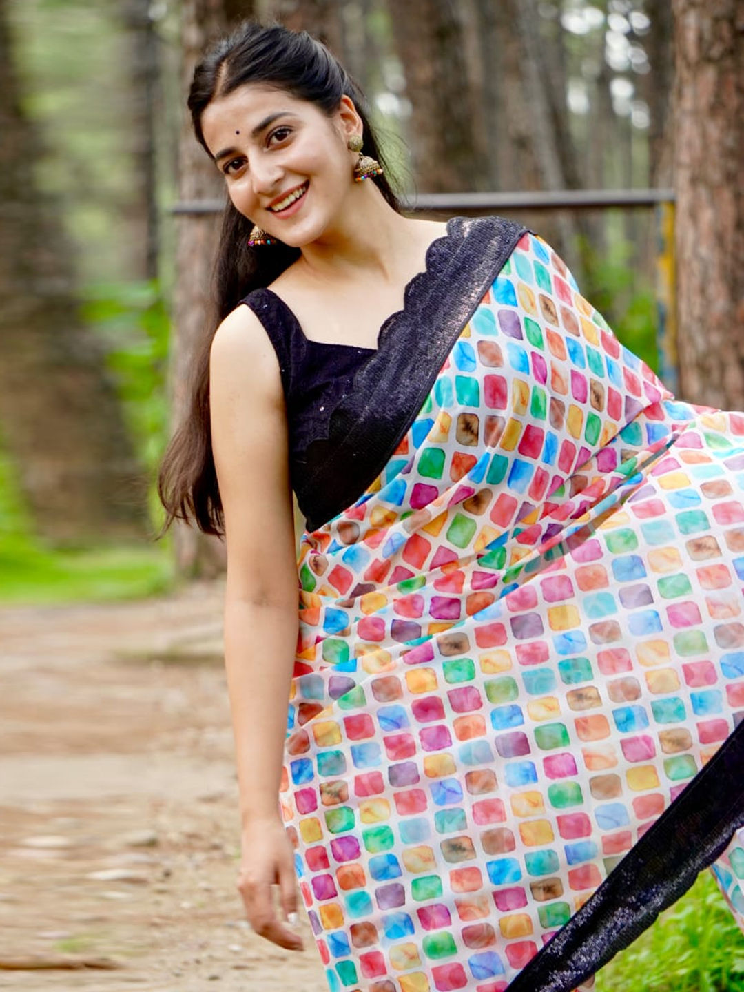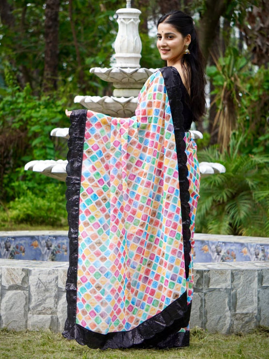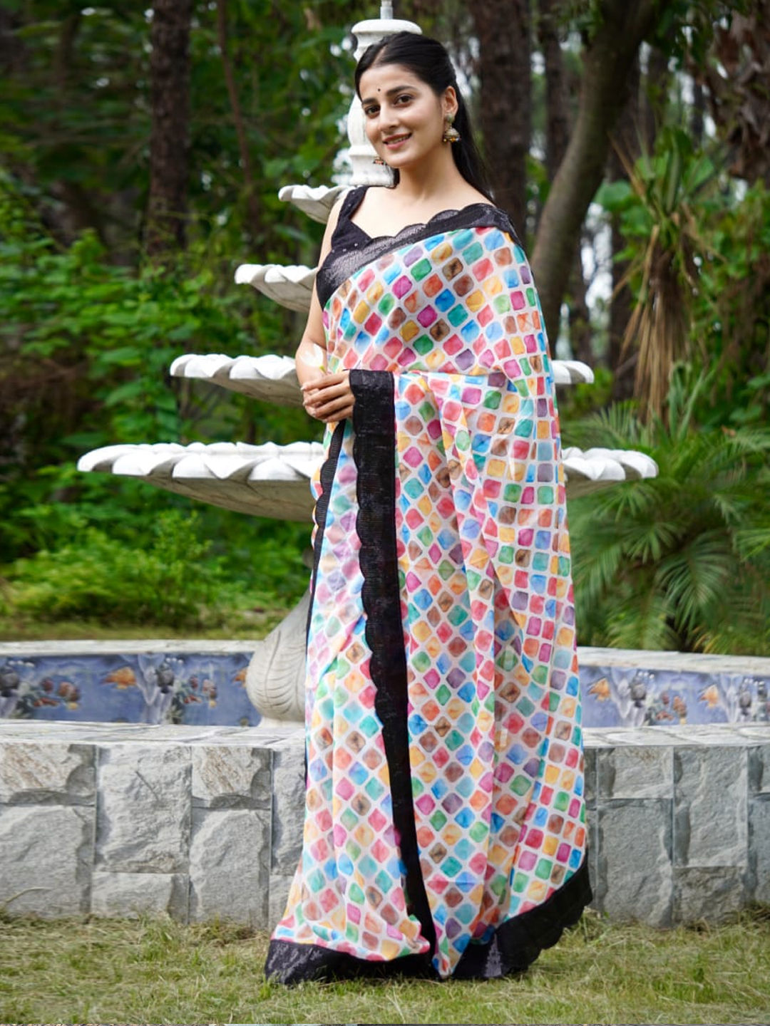 Multicolor color Saree in Faux Georgette fabric with Border, Printed, Sequence work
