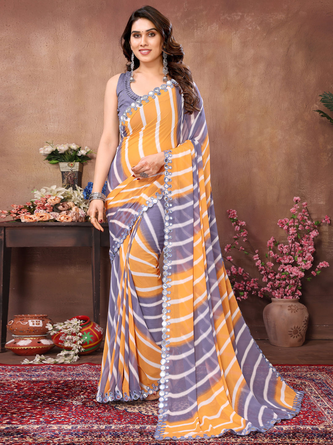 Black and Grey, Pink and Majenta color Saree in Faux Georgette fabric with Lace, Mirror, Printed work