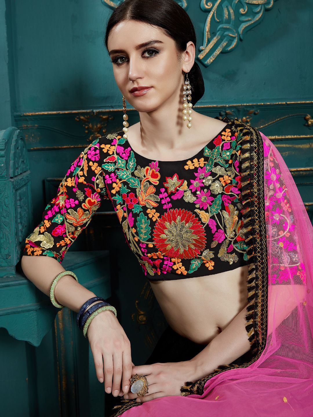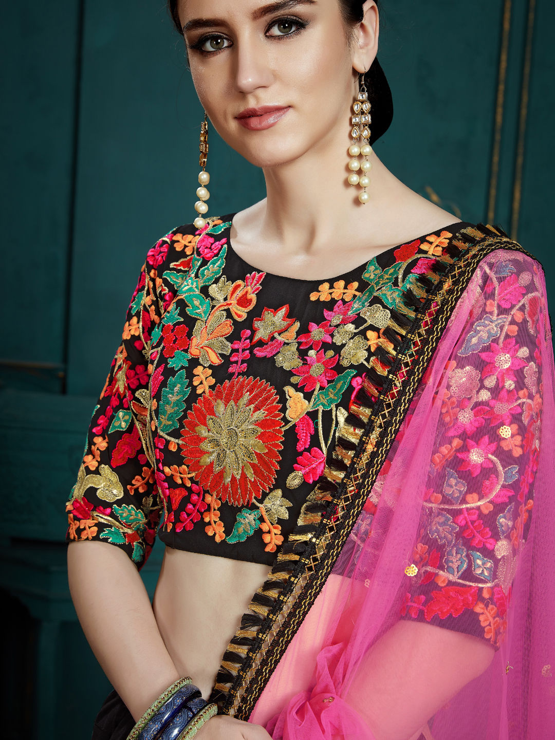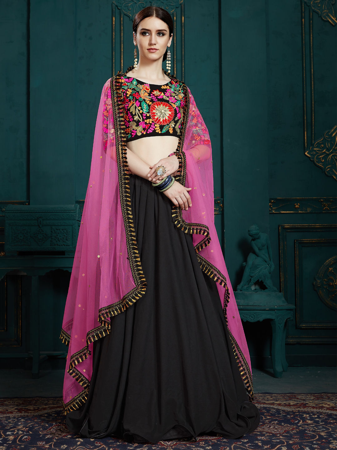 Black and Grey color Lehenga in Faux Georgette fabric with Embroidered, Sequence, Thread work