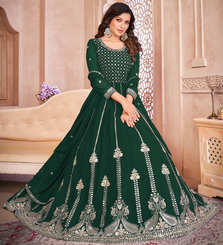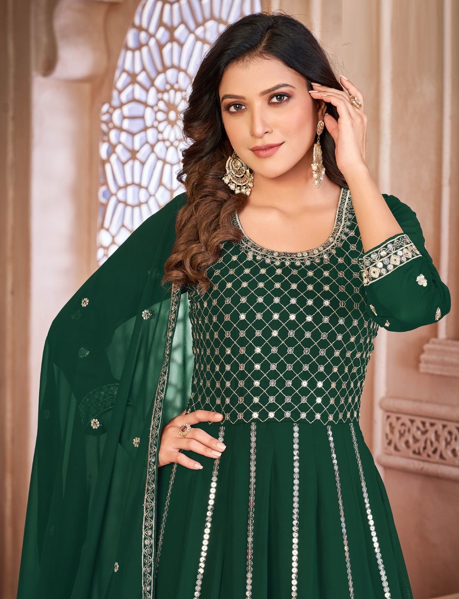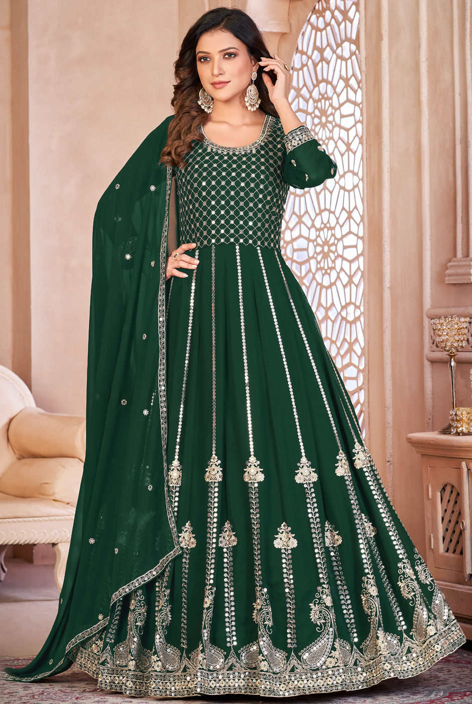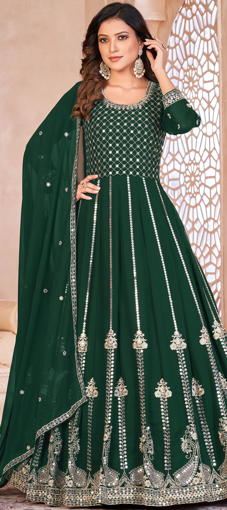 Green color Salwar Kameez in Faux Georgette fabric with Embroidered, Sequence, Thread, Zari work