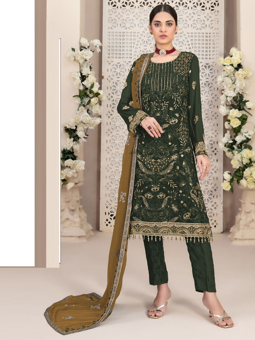 in Green with Embroidered work