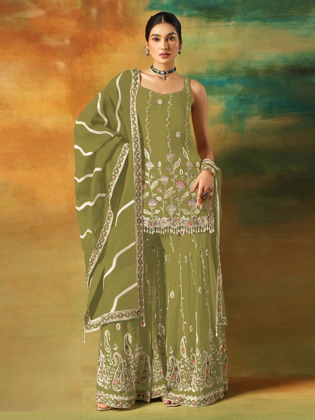 Green color Salwar Kameez in Faux Georgette fabric with Bugle Beads, Sequence, Thread work