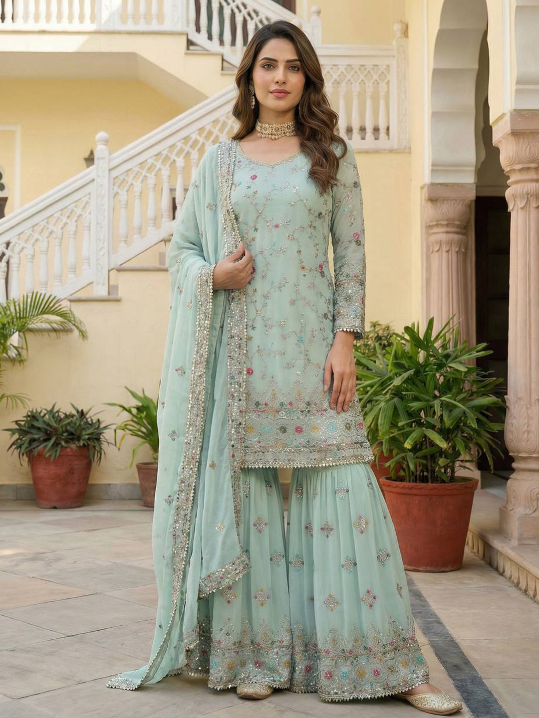 Green color Salwar Kameez in Faux Georgette fabric with Embroidered, Sequence, Thread work