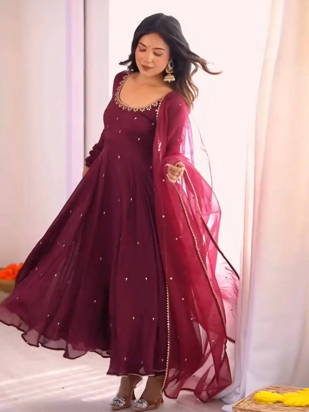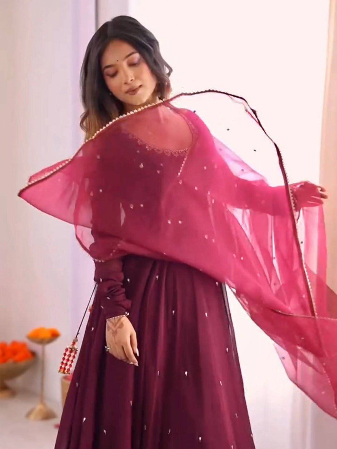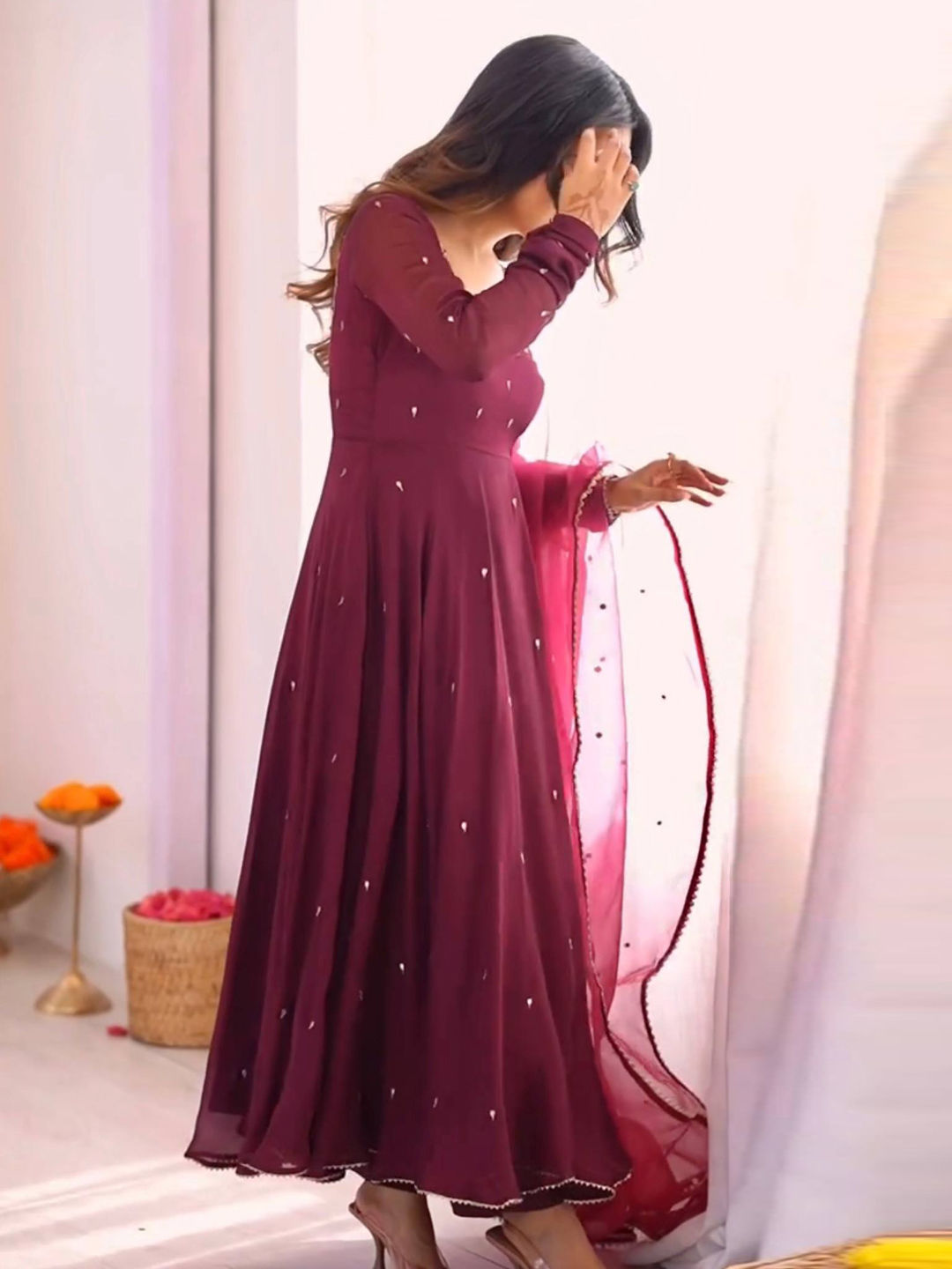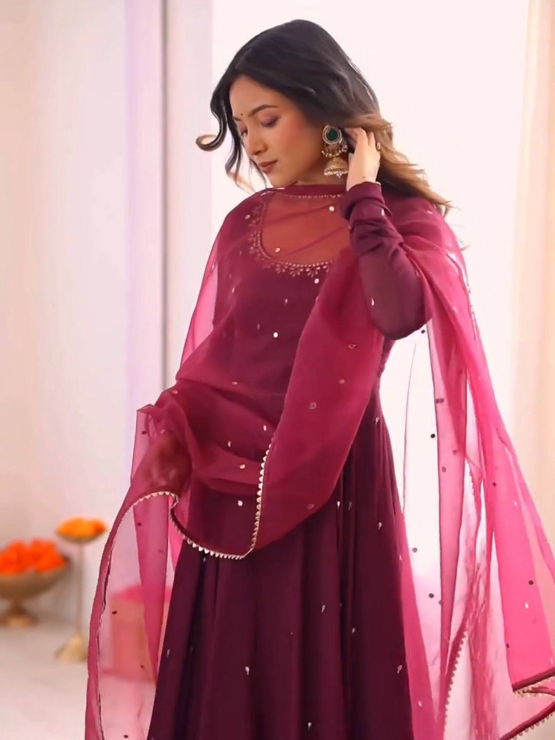 Pink and Majenta color Salwar Kameez in Faux Georgette fabric with Embroidered, Thread work