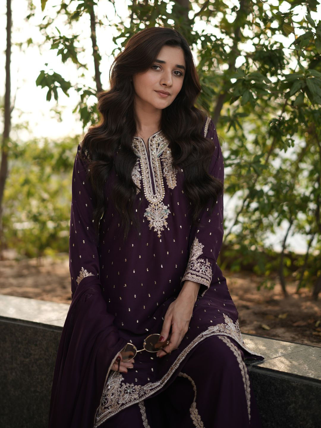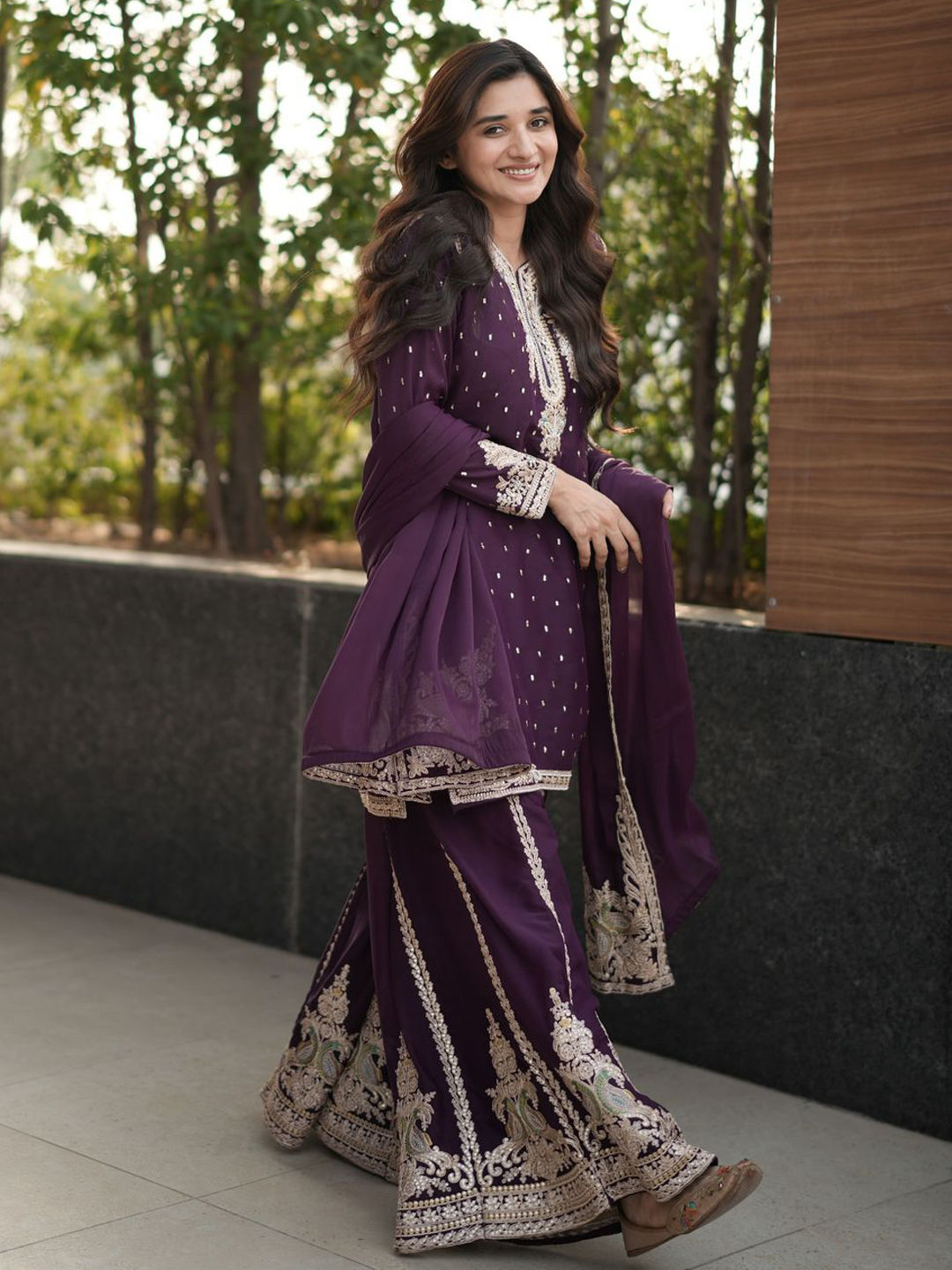 Purple and Violet color Salwar Kameez in Faux Georgette fabric with Embroidered, Sequence, Thread work