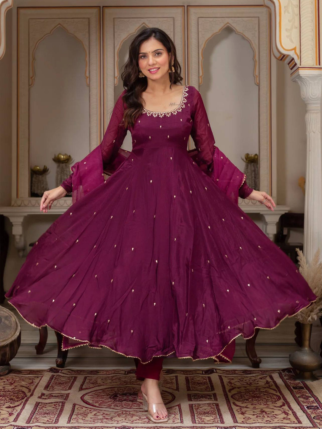 Purple and Violet color Salwar Kameez in Faux Georgette fabric with Embroidered, Sequence work