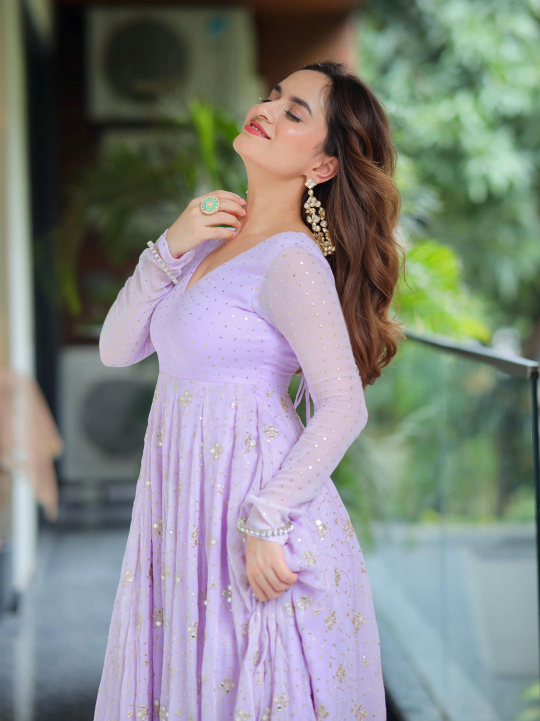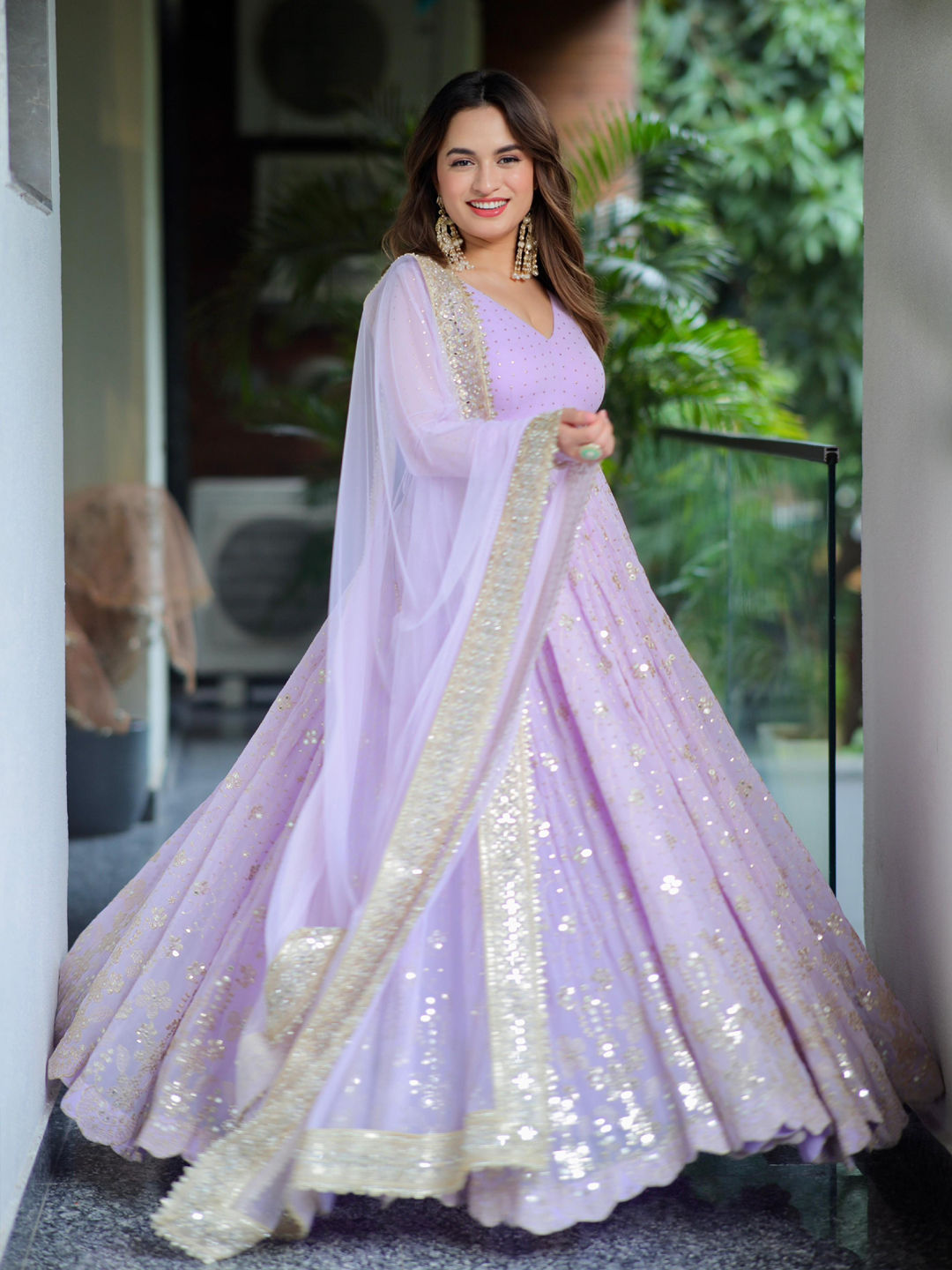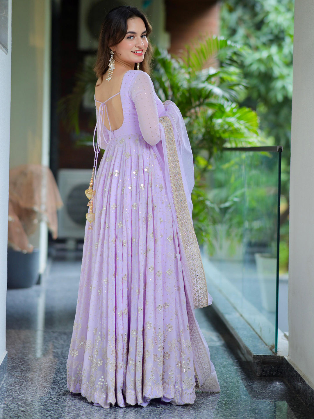 Purple and Violet color Salwar Kameez in Faux Georgette fabric with Embroidered, Sequence, Thread, Zari work
