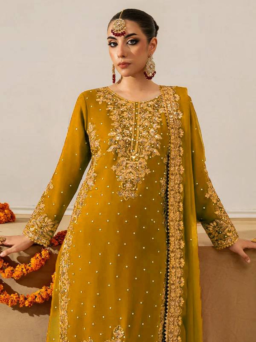 Yellow color Salwar Kameez in Faux Georgette fabric with Moti, Sequence work