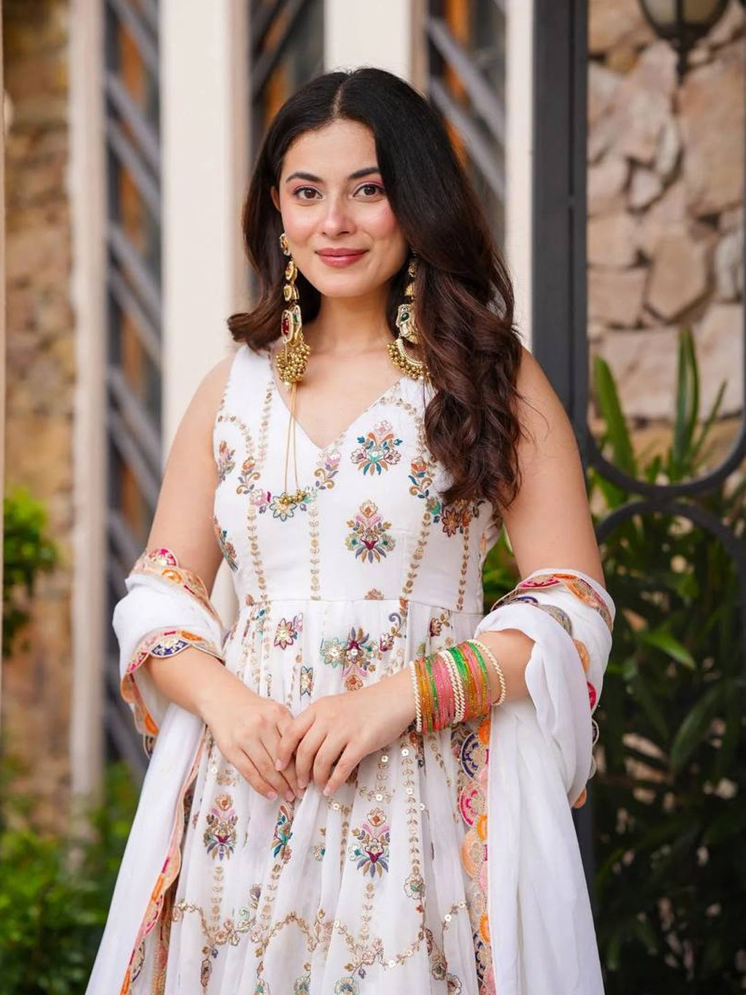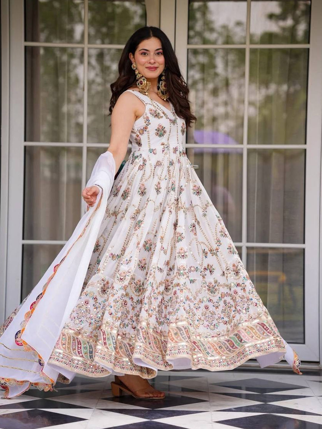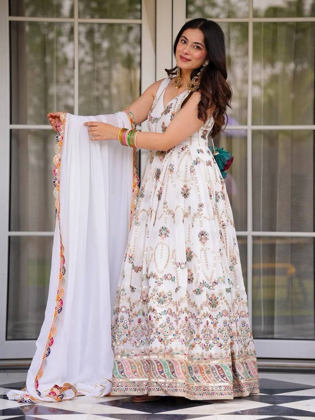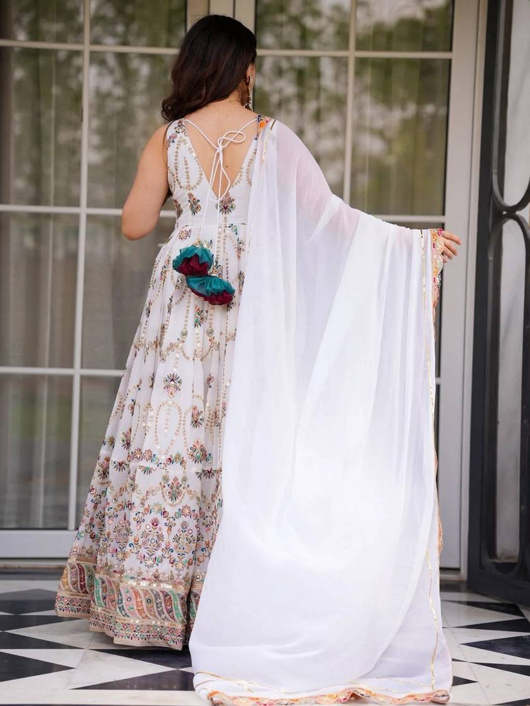 White and Off White color Gown in Faux Georgette fabric with Sequence, Thread work