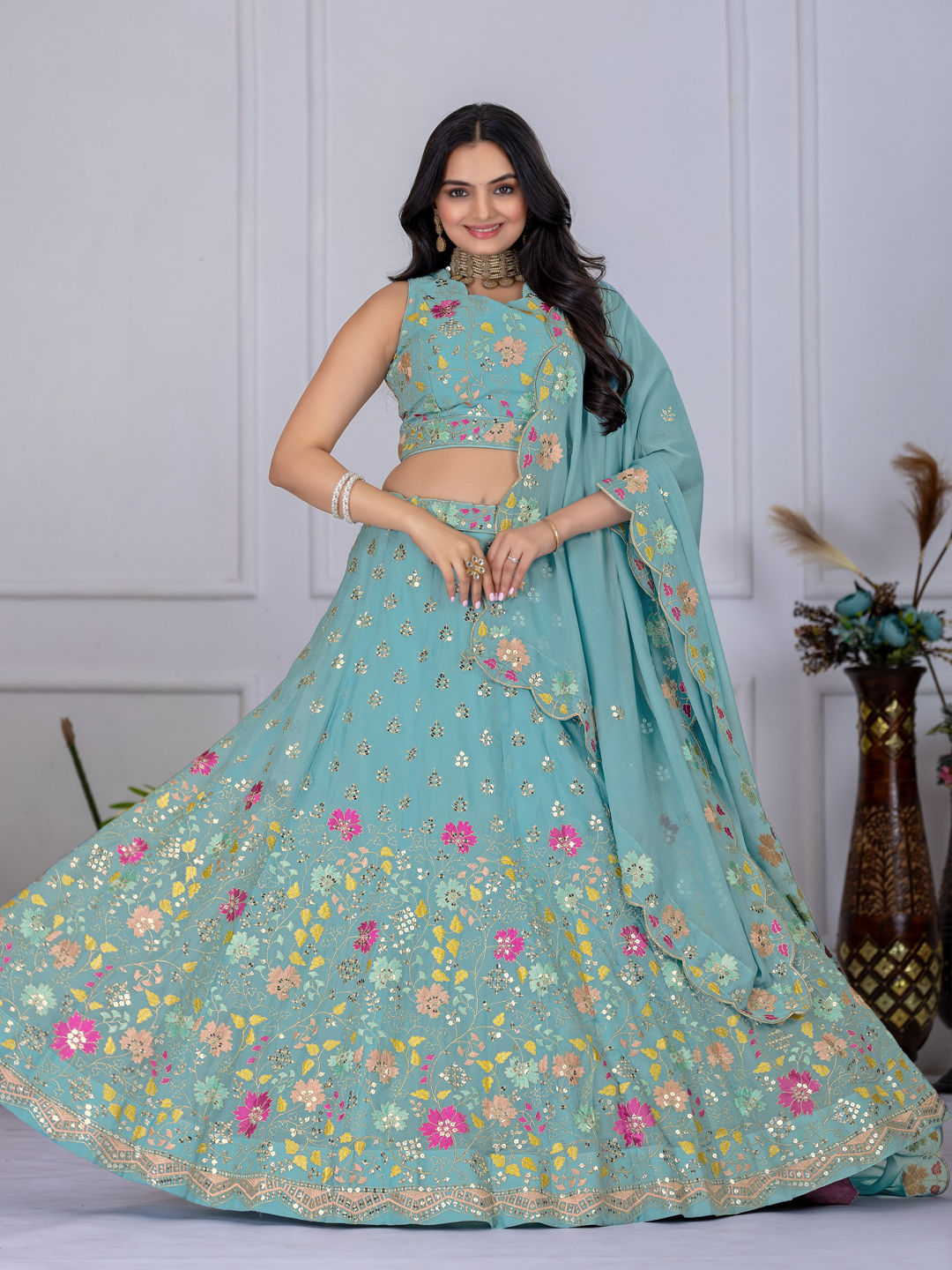 Blue color Lehenga in Faux Georgette fabric with Embroidered, Sequence, Thread work
