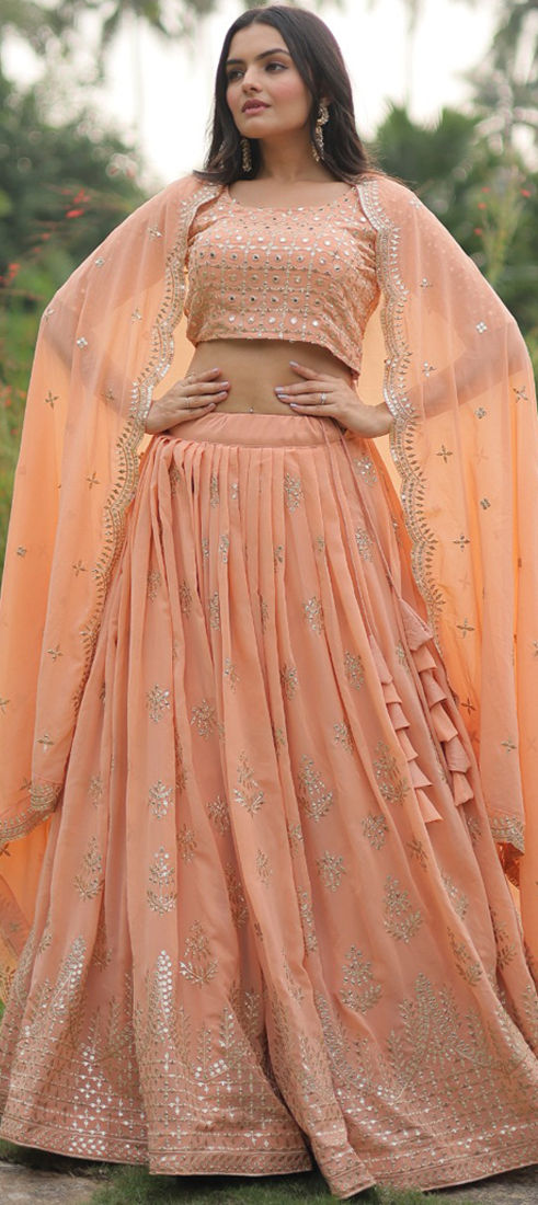 Pink and Majenta color Lehenga in Faux Georgette fabric with Embroidered, Sequence, Thread, Zari work