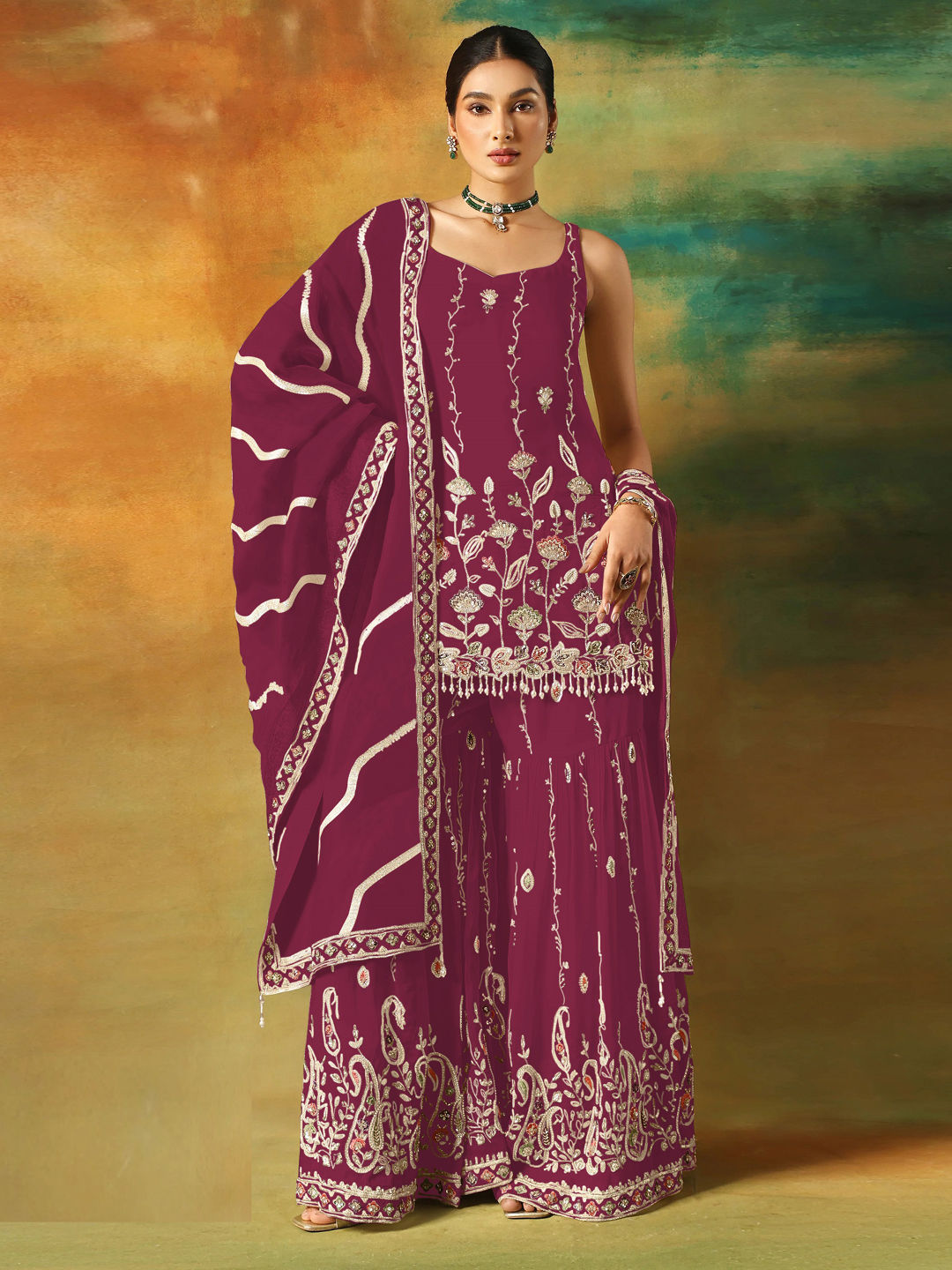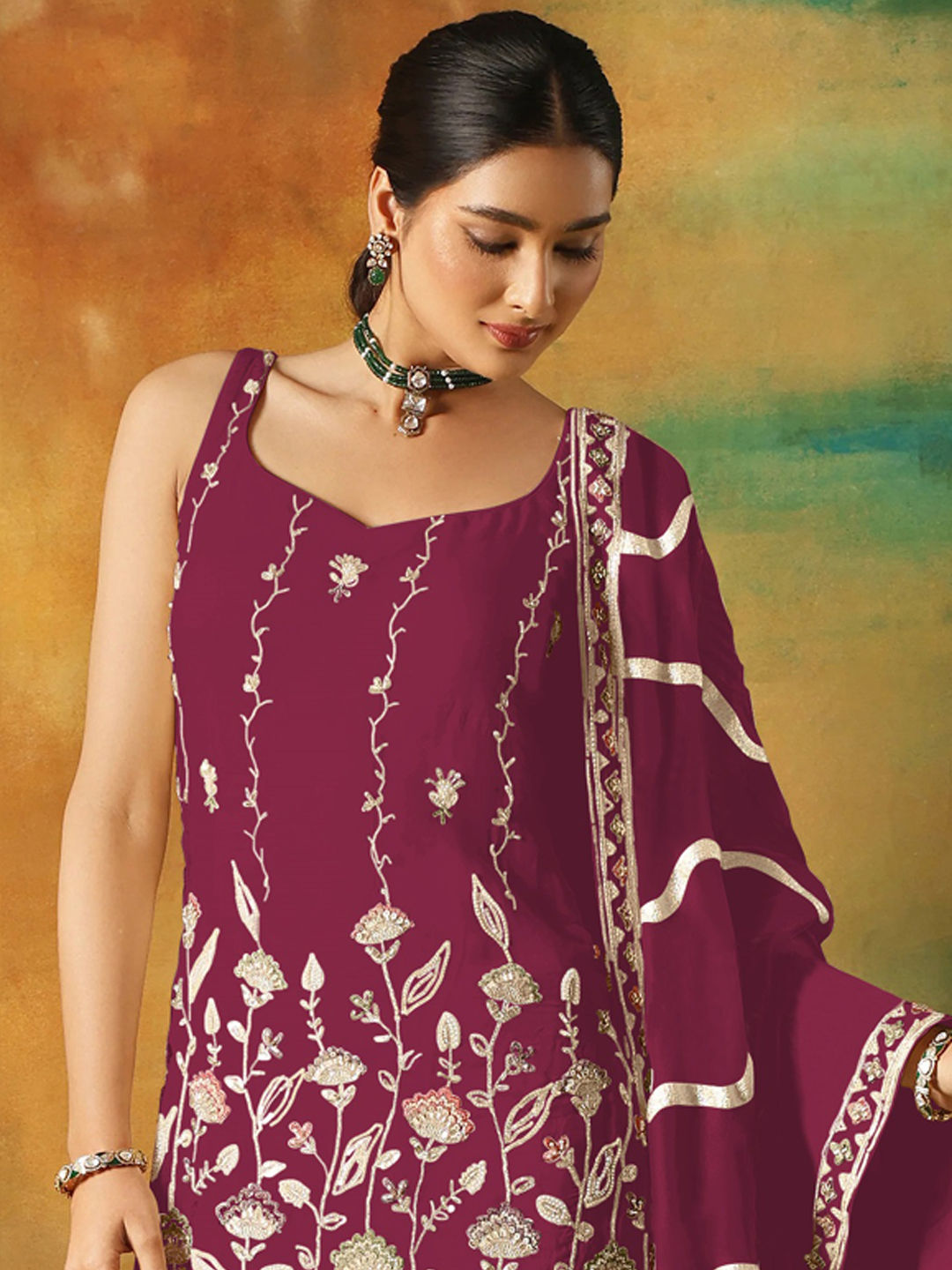 in Pink and Majenta with Thread work