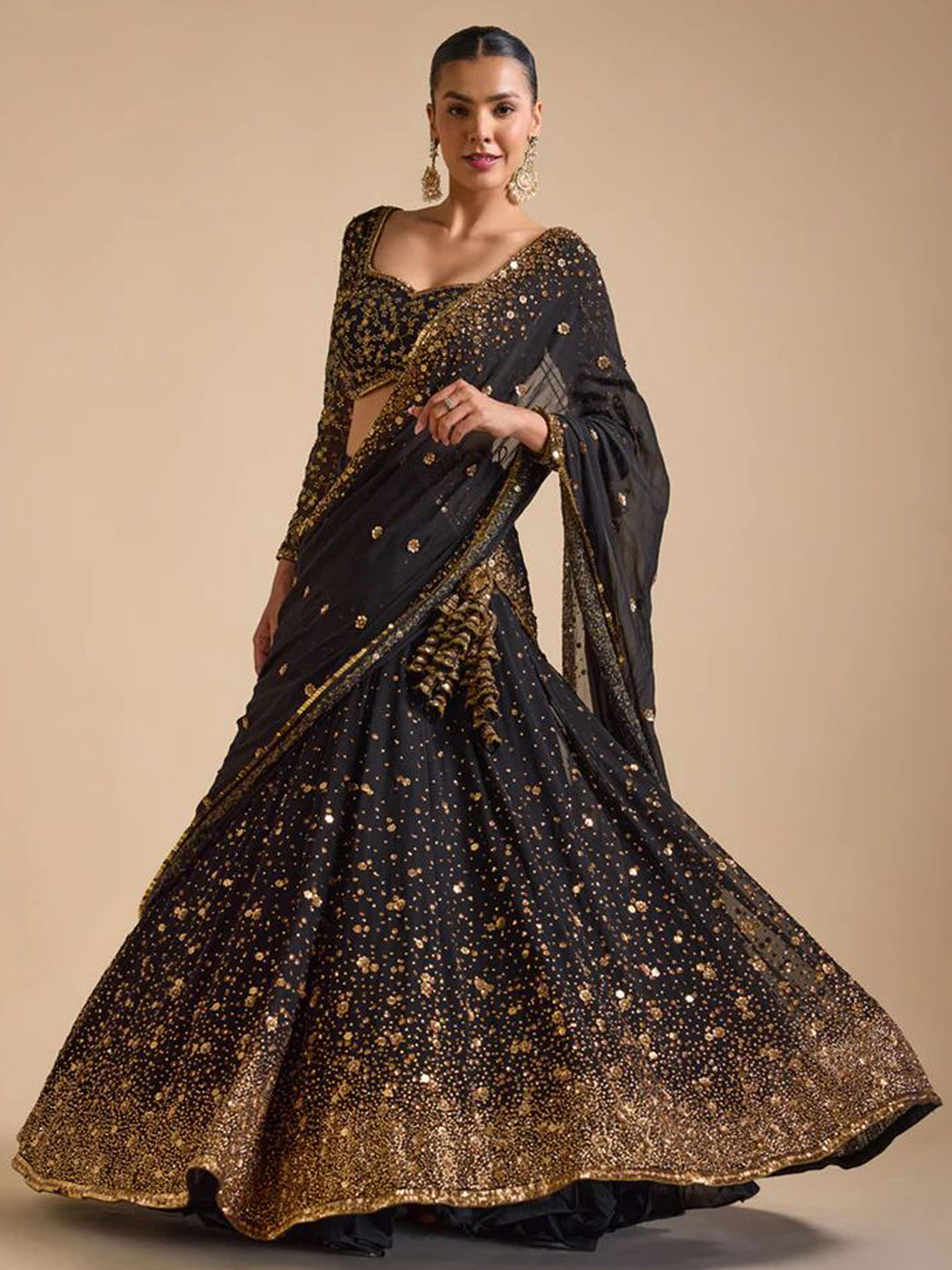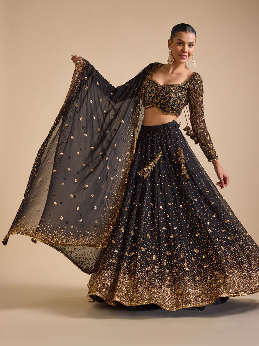 Black and Grey color Lehenga in Georgette fabric with Embroidered, Sequence, Stone, Thread work