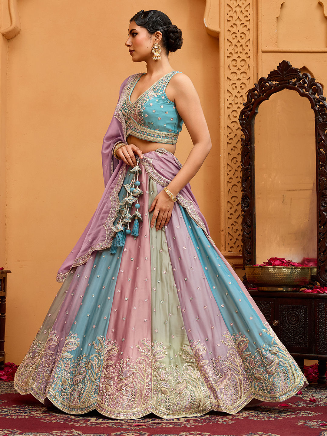 Tissue Wedding Lehenga in Purple and Violet with Thread work