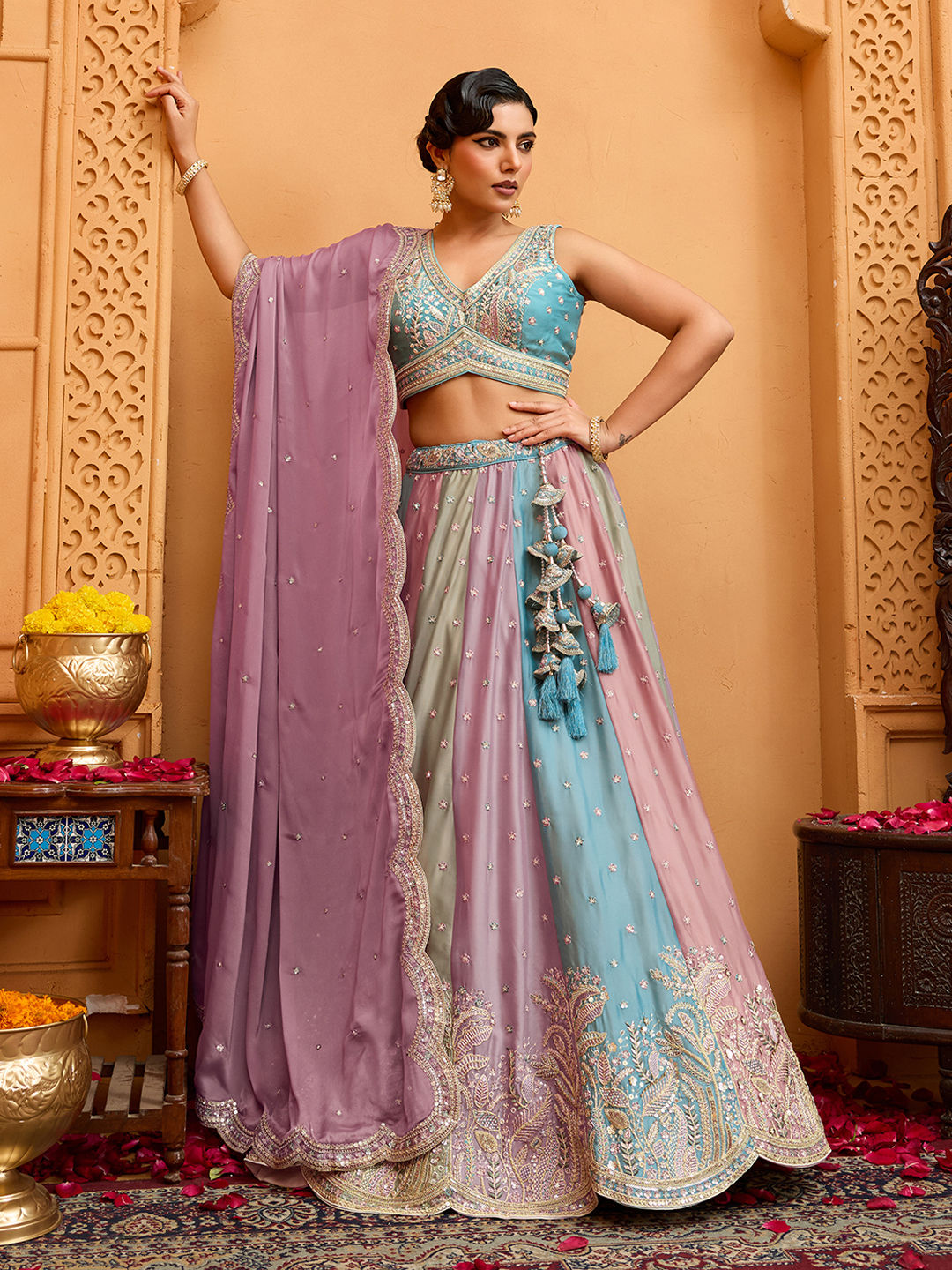 Pink and Majenta color Lehenga in Georgette fabric with Embroidered, Sequence, Stone, Thread work