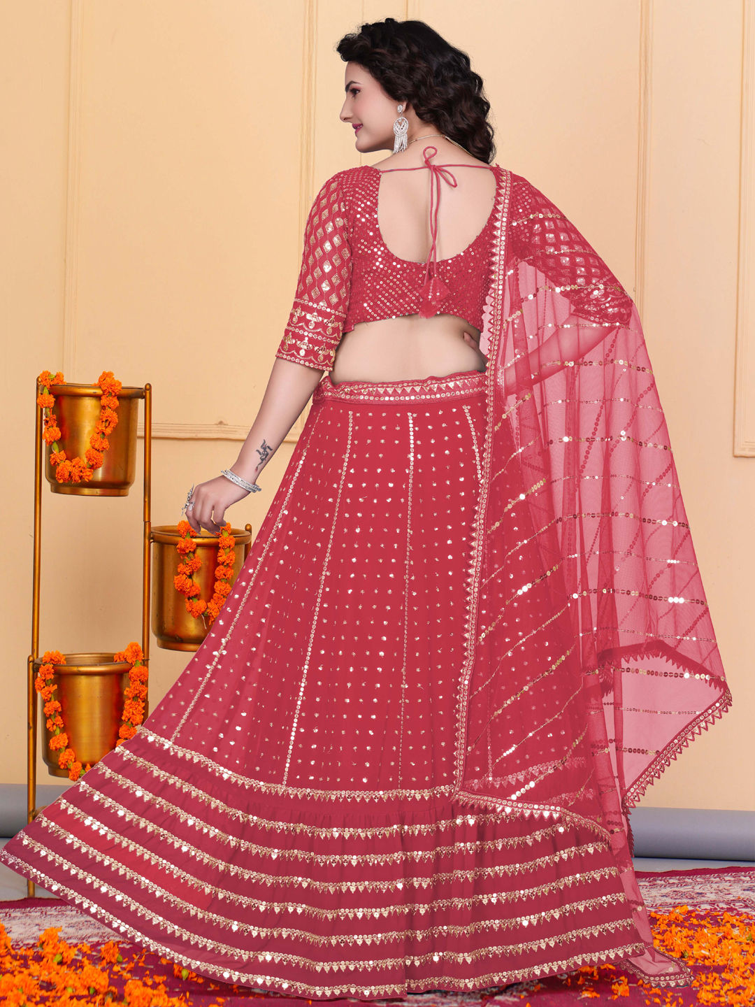 Red and Maroon color Lehenga in Georgette fabric with Sequence, Thread, Zari work