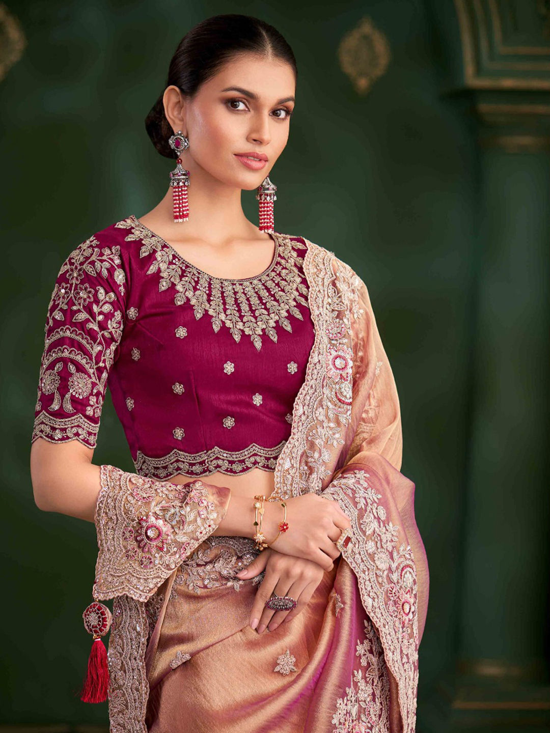 Georgette Bridal Saree in Pink and Majenta with Embroidered work