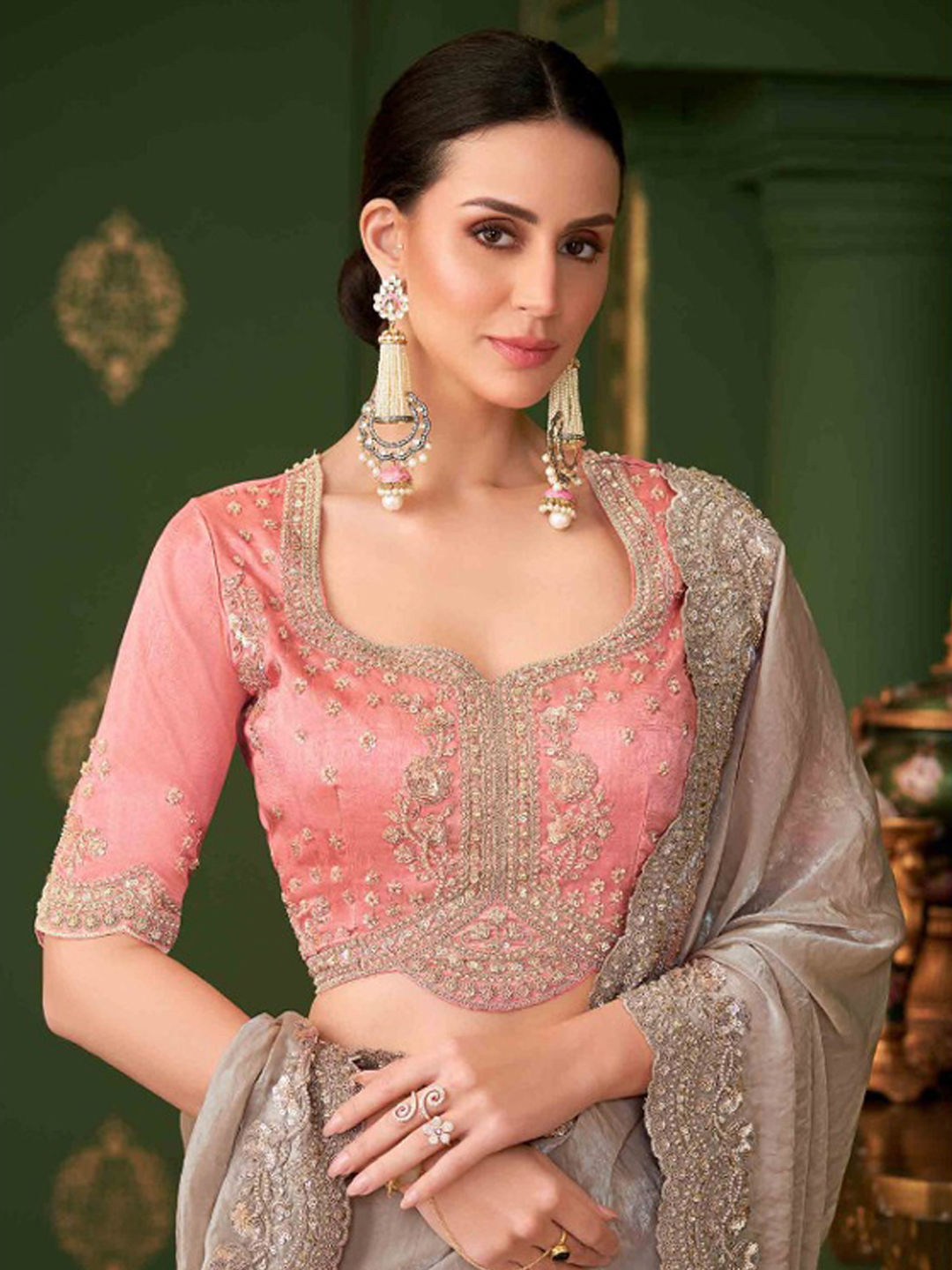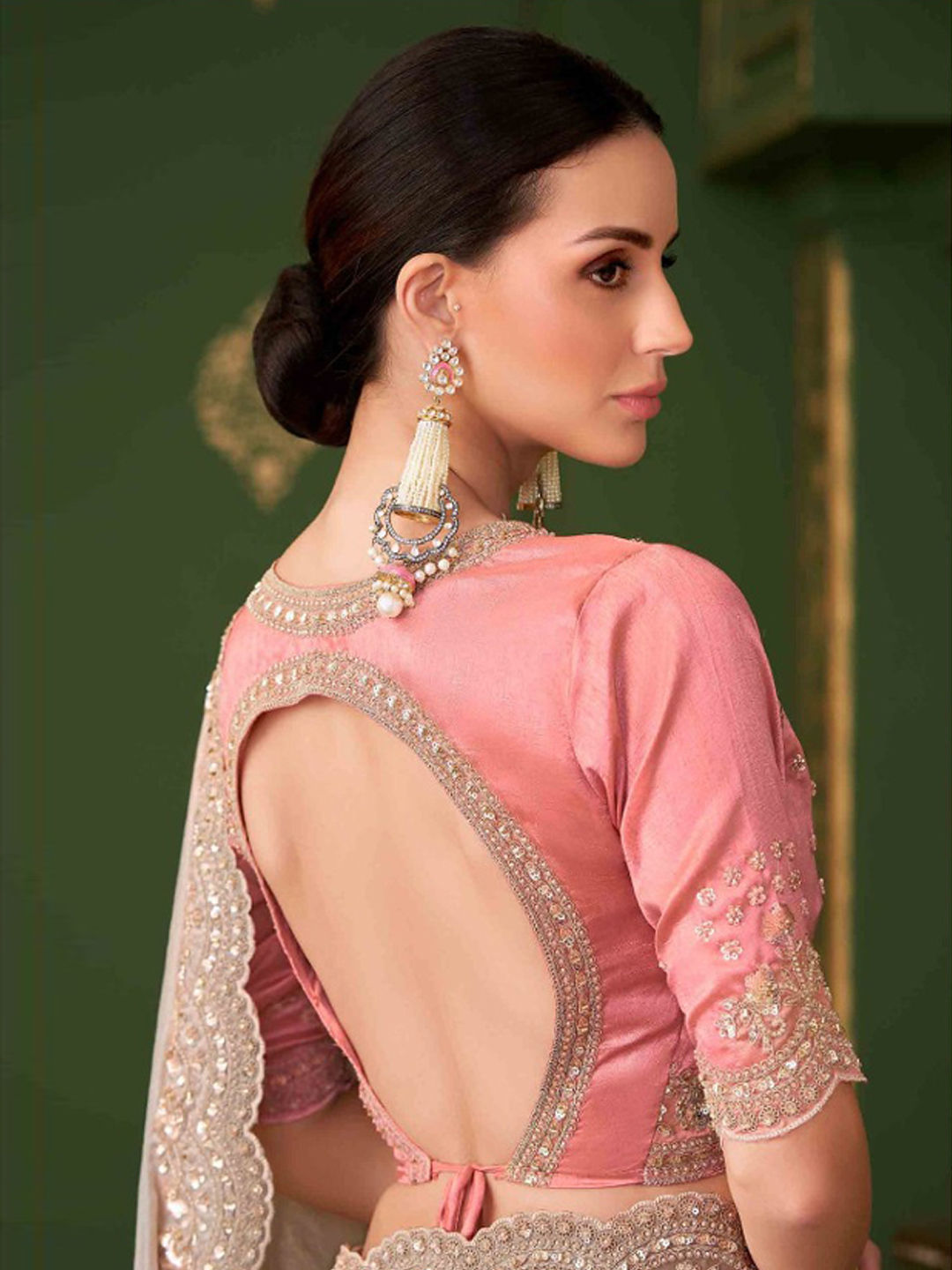 Georgette Bridal Saree in Pink and Majenta with Embroidered work