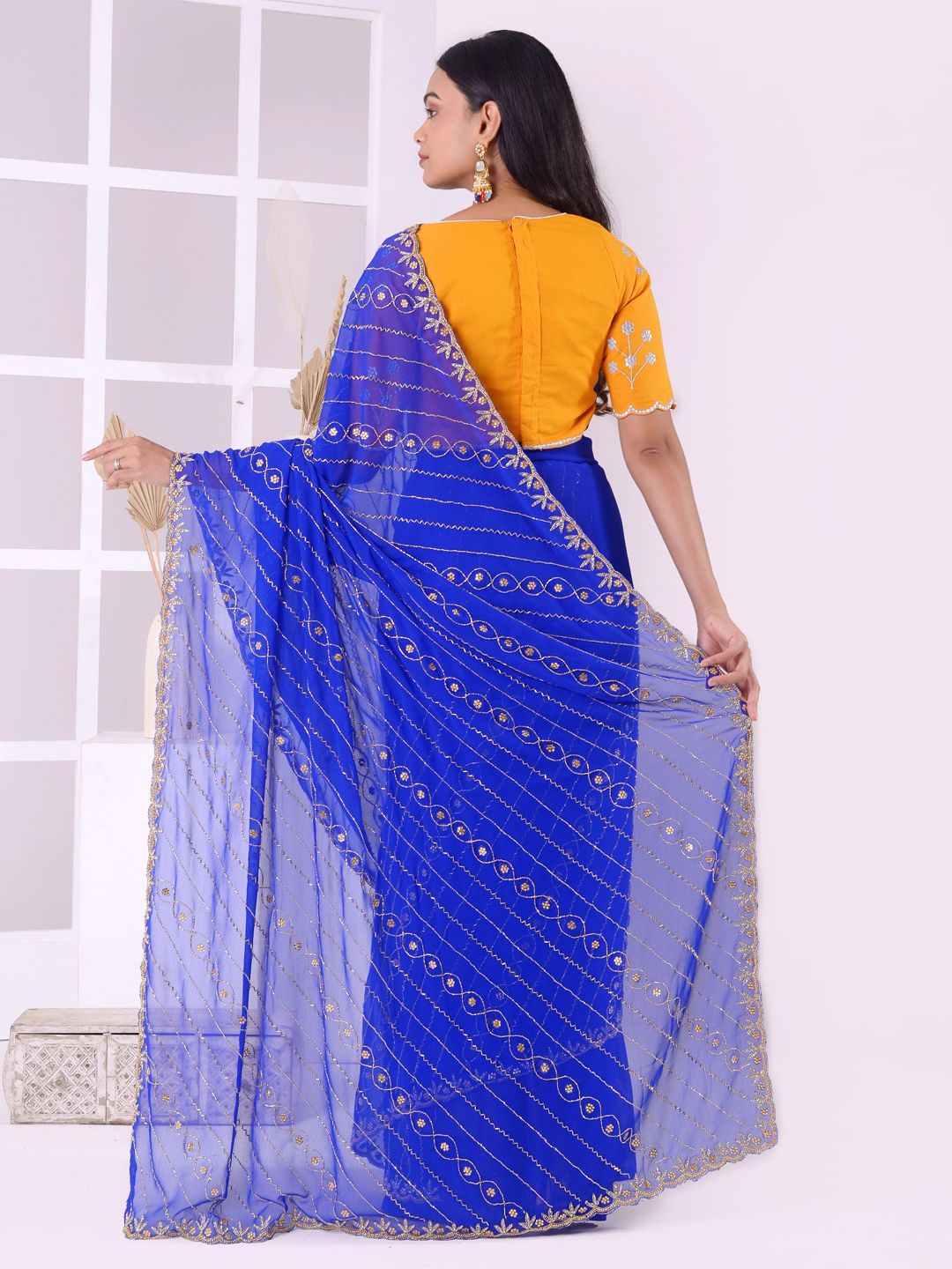 Blue color Saree in Georgette fabric with Cut Dana, Mirror, Moti, Zircon work