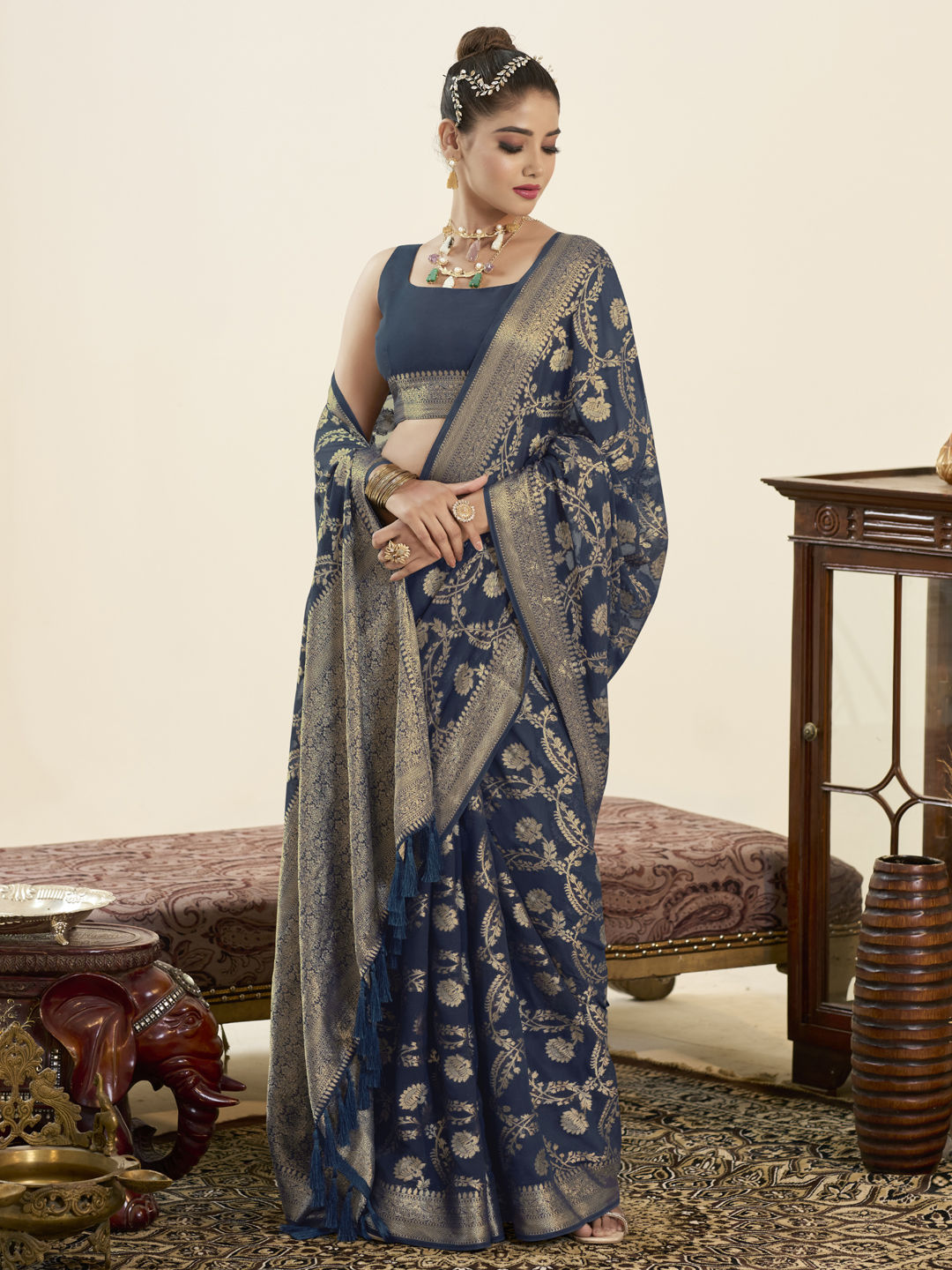 Blue color Saree in Georgette fabric with Weaving, Zari work
