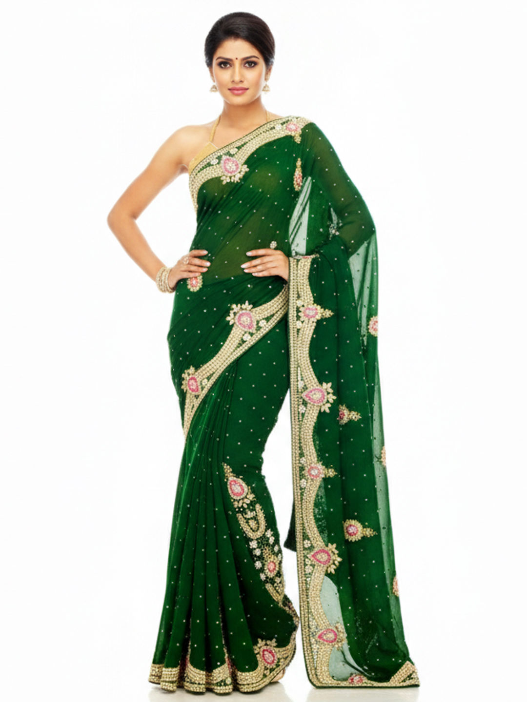 Green color Saree in Georgette fabric with Embroidered, Stone work